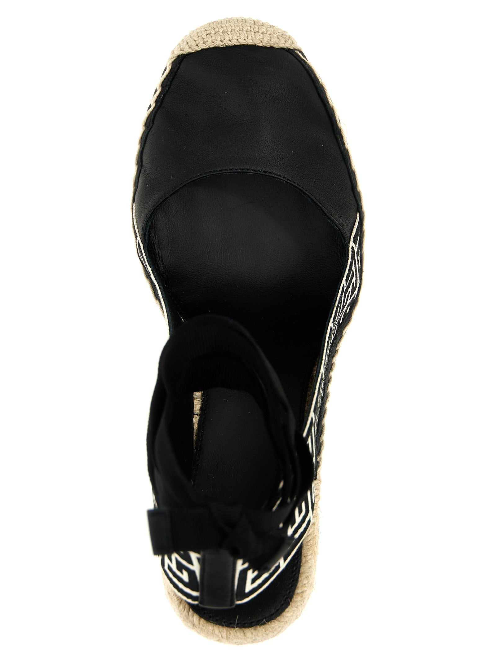 Alex 'Espadrilles w PB Monogram Jacquard materiał ze skórzanym palcem, regulowany pasek Grosgrain przy kostce i tkana lina klinowa.