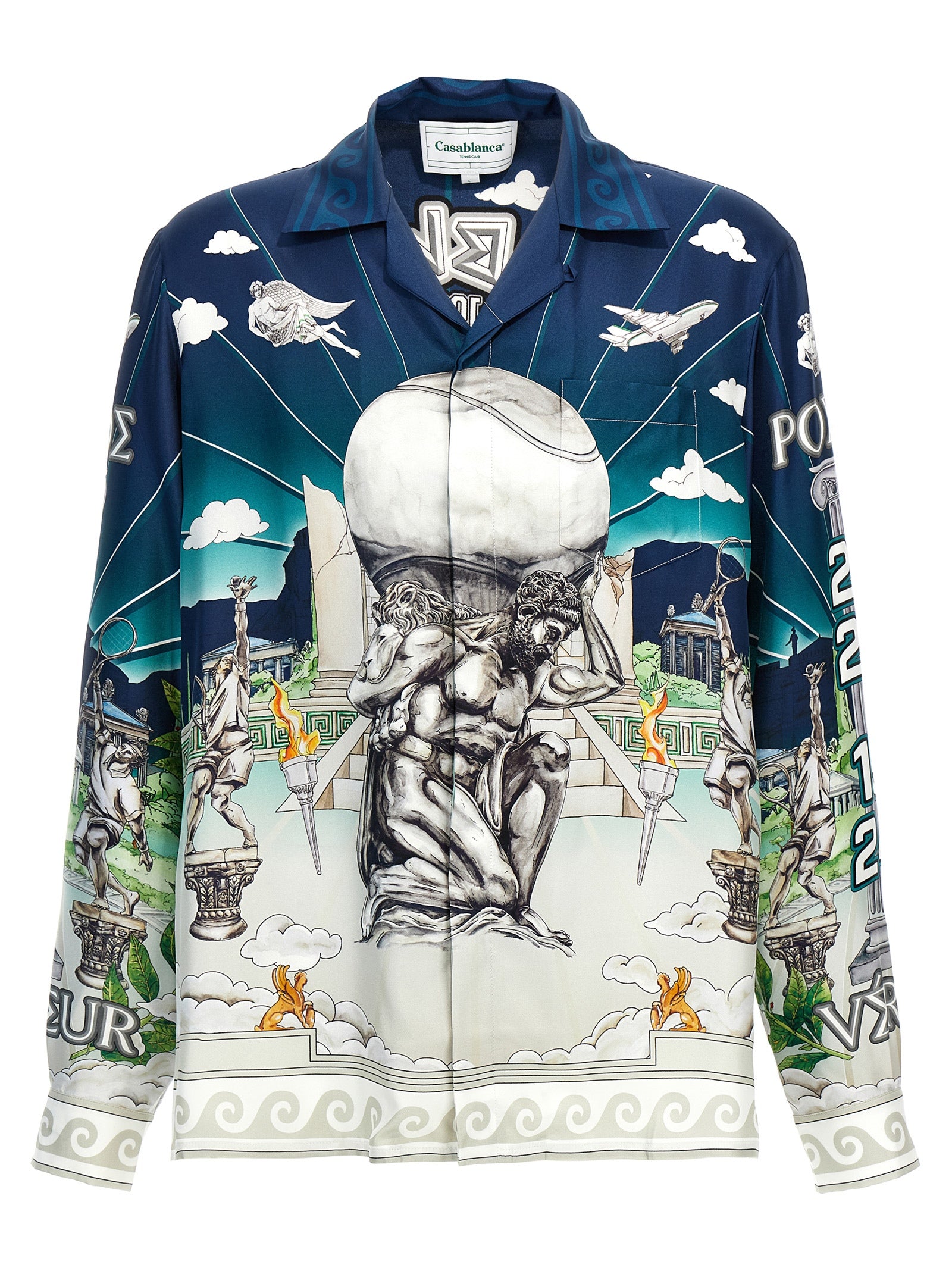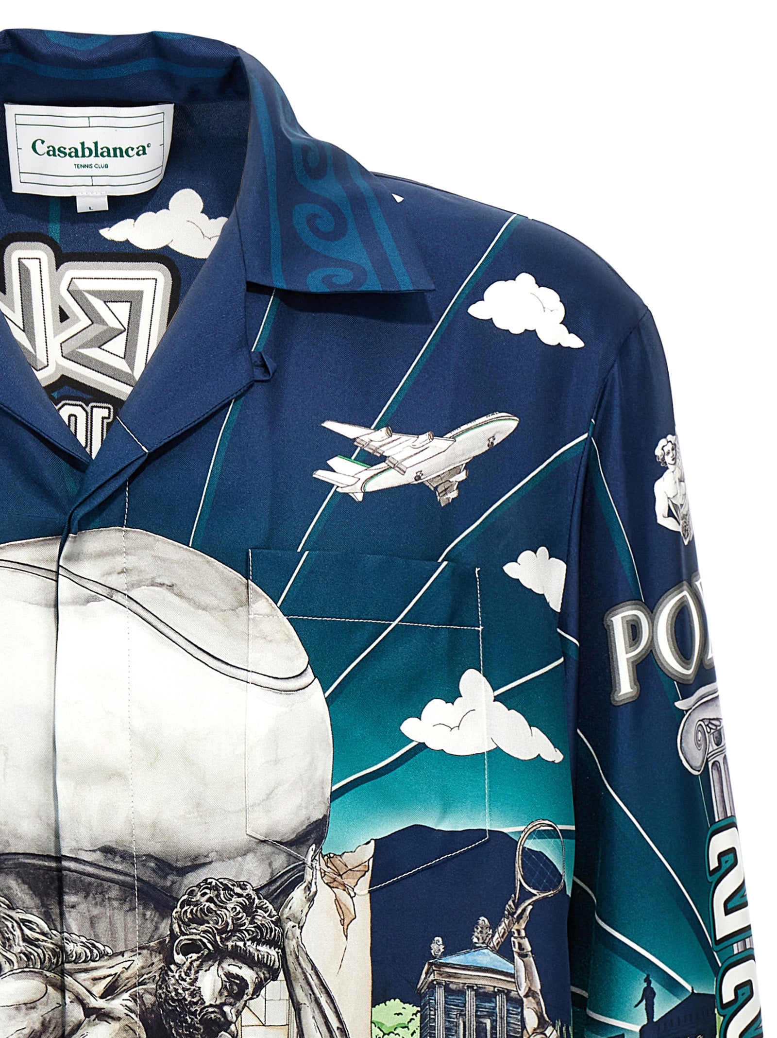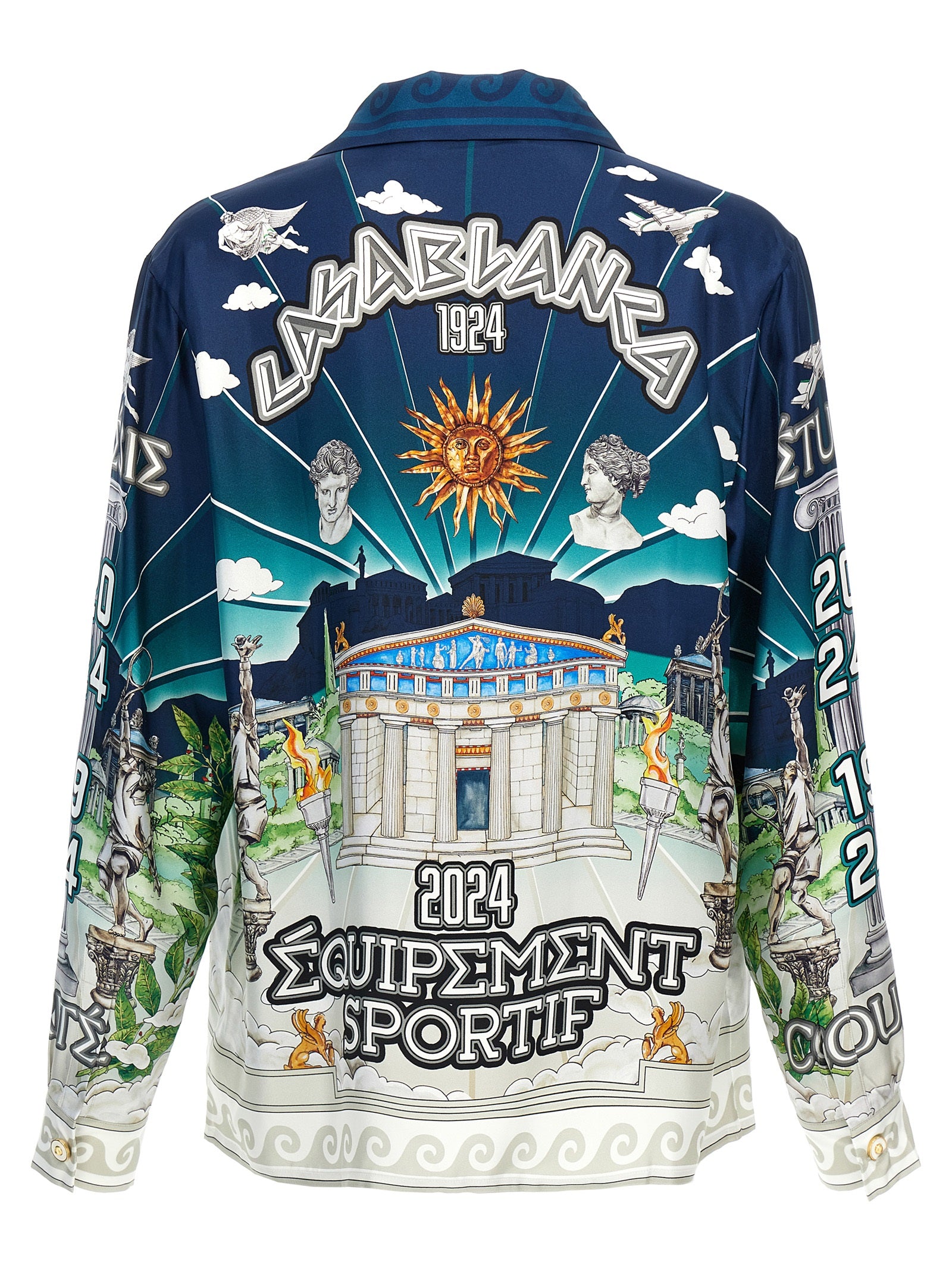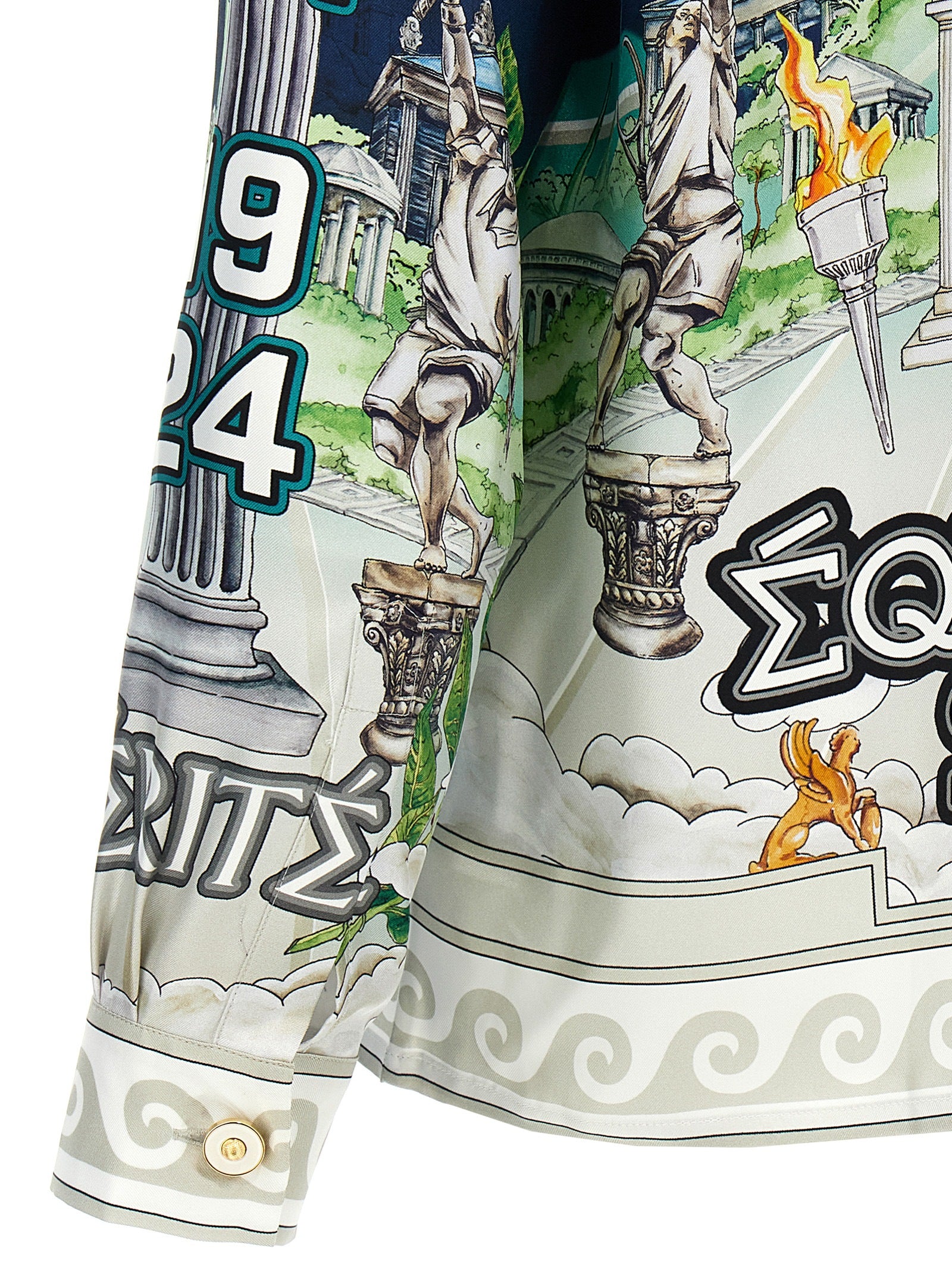 Wydrukowana jedwabna koszula „Le Temple du Sport”, przednia kieszeń, zamknięcie guzików, długie rękawy mankietów.