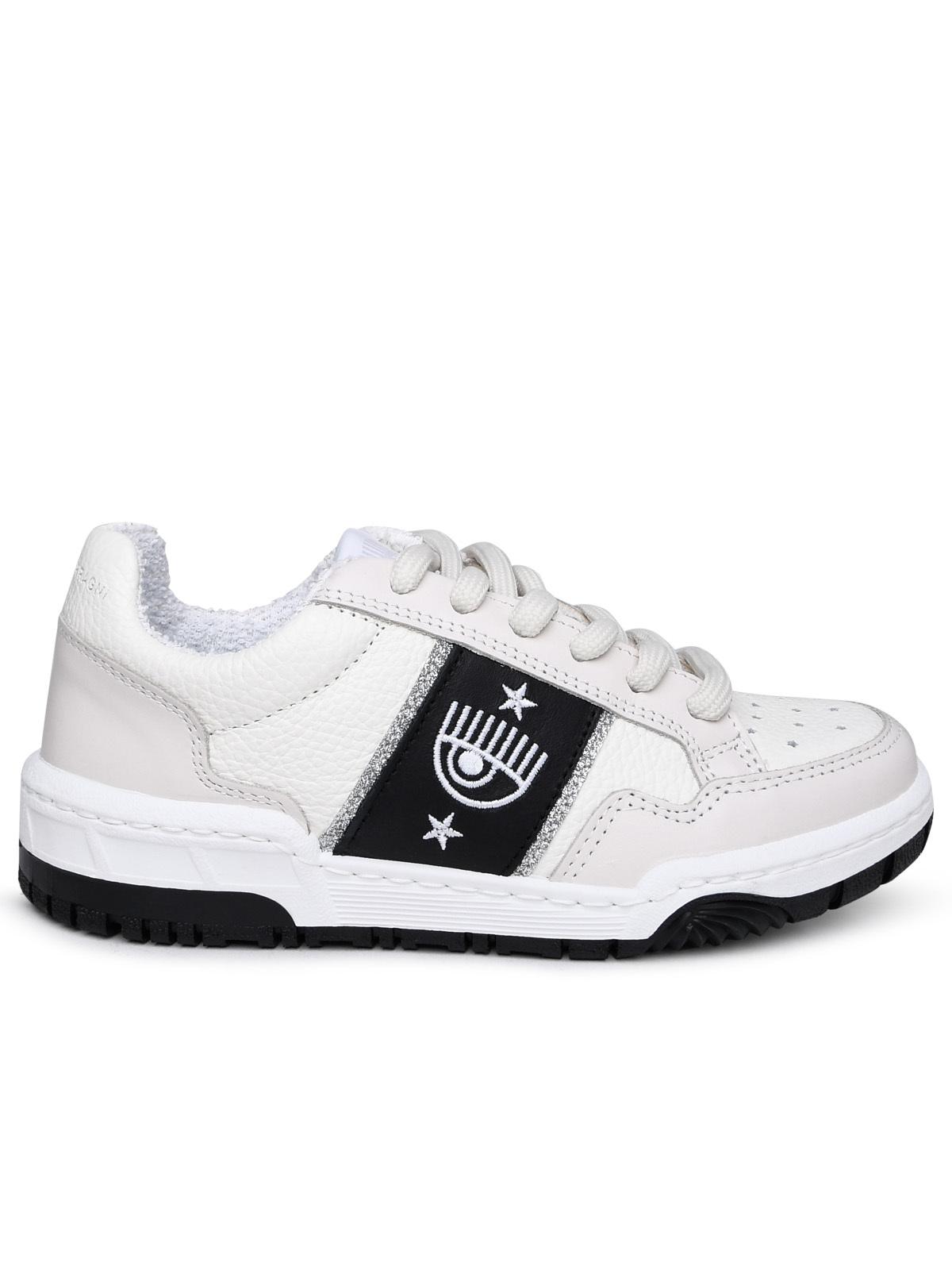 Etykieta materiałowa z logo nakładanym na język, haftowane logo z boku, logo Chiara Ferragni wytłoczone z tyłu, gumowa podeszwa