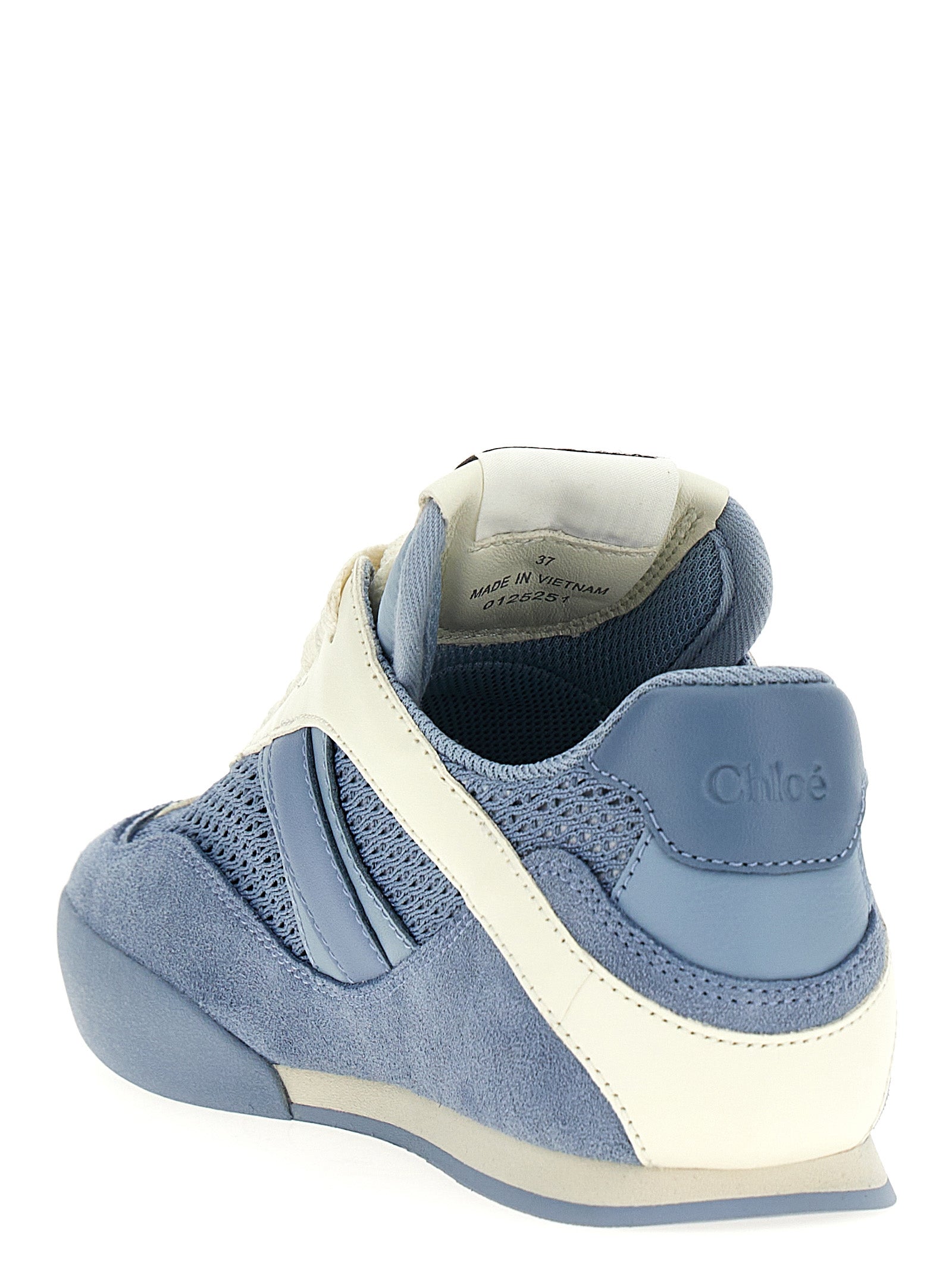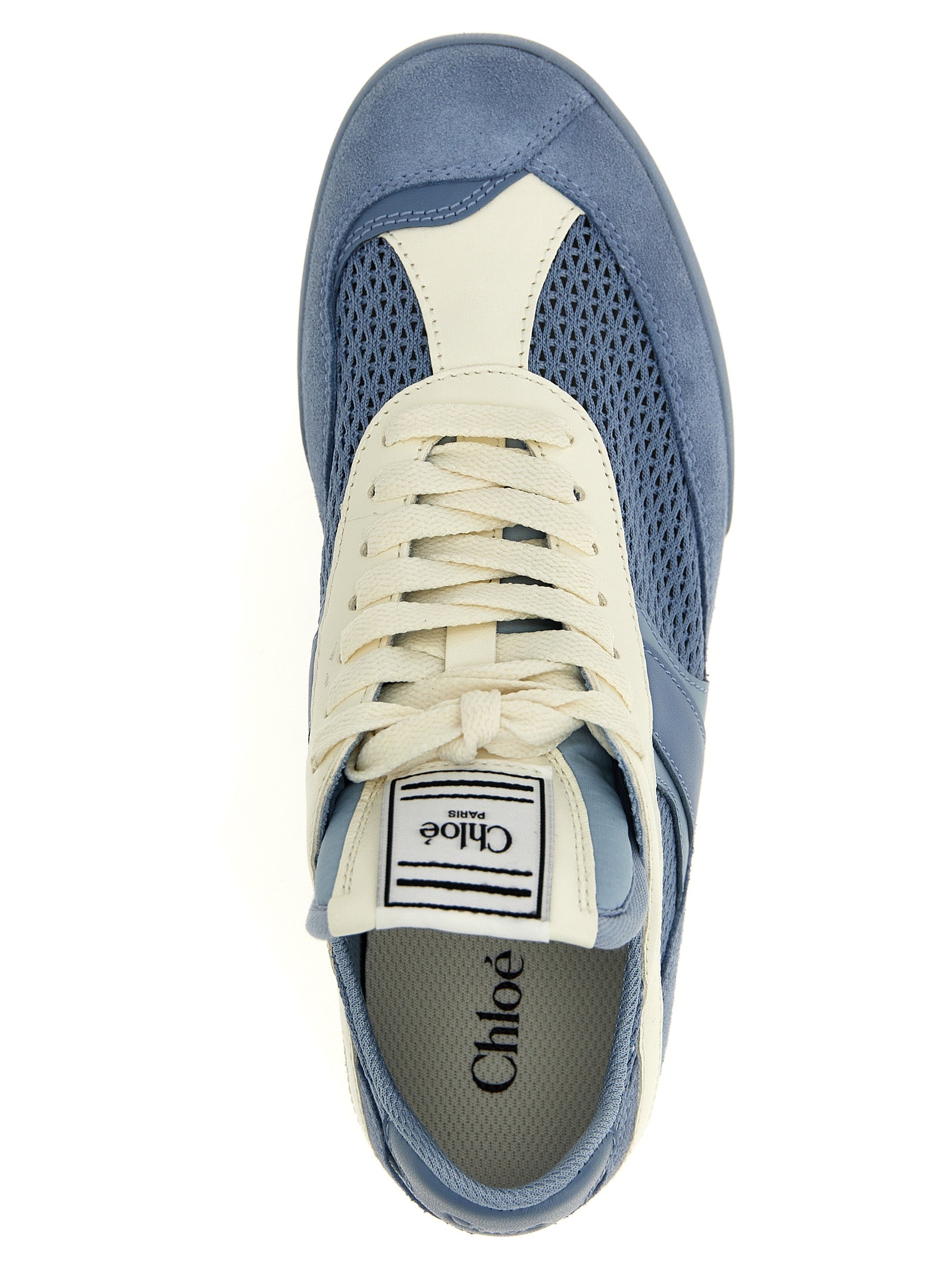 Trampki „Chloé Kick” w perforowanej skórze i zamszu materiału, logo na języku, koronkowe zamknięcie, gumowa podeszwa i palce.