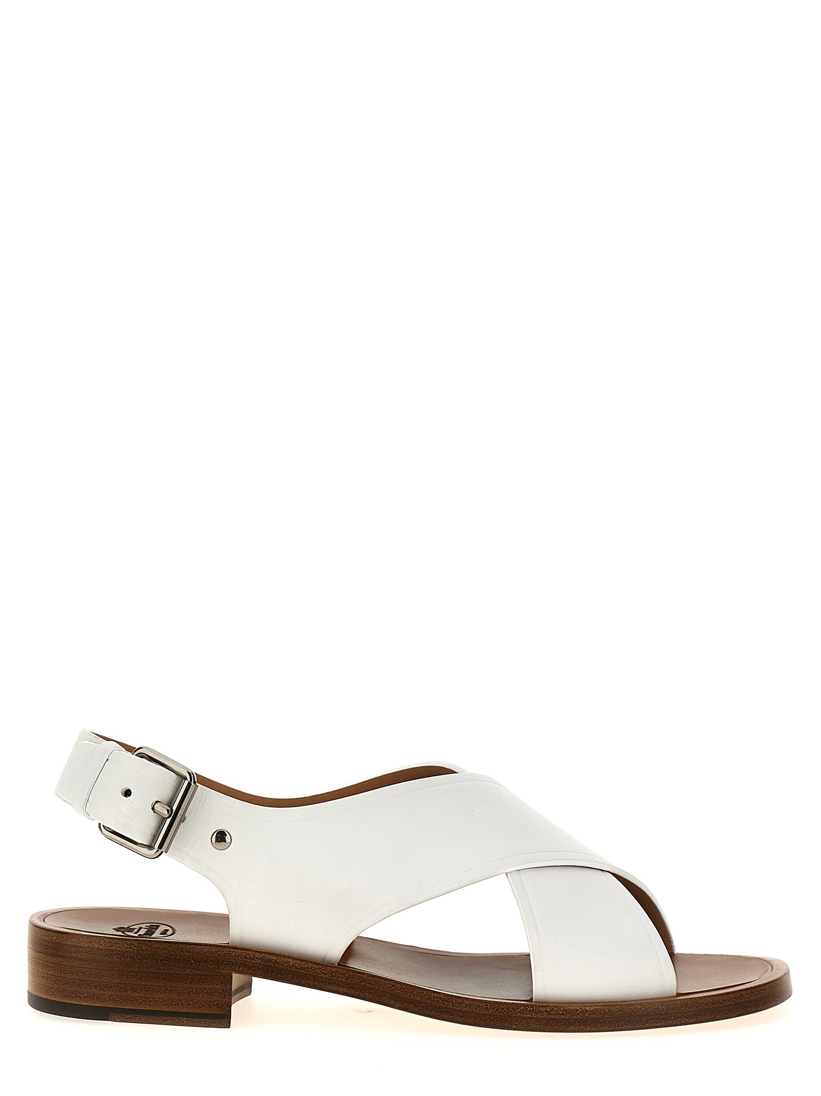 Skórne sandały, regulowany pasek, skórzana podeszwa.