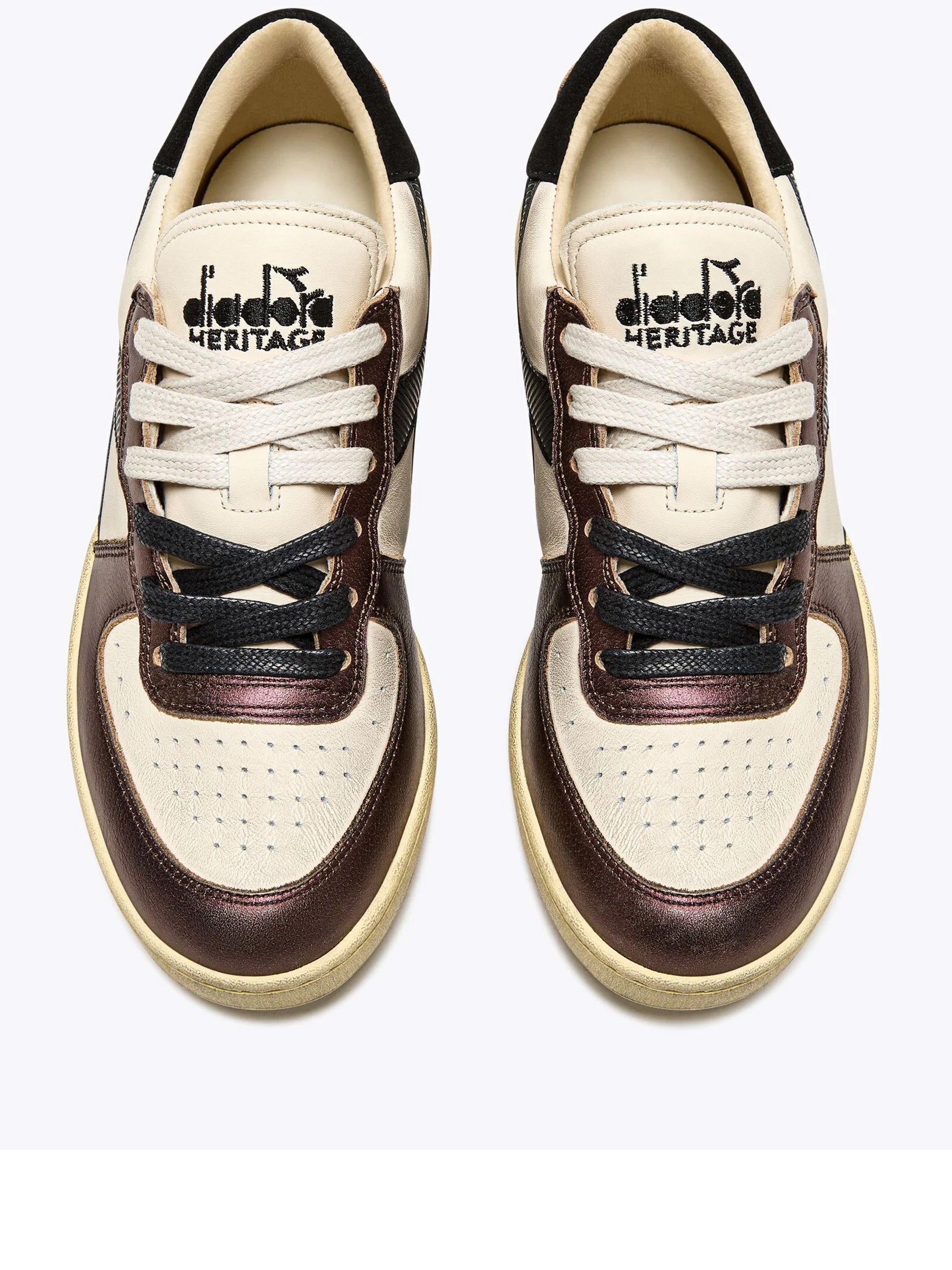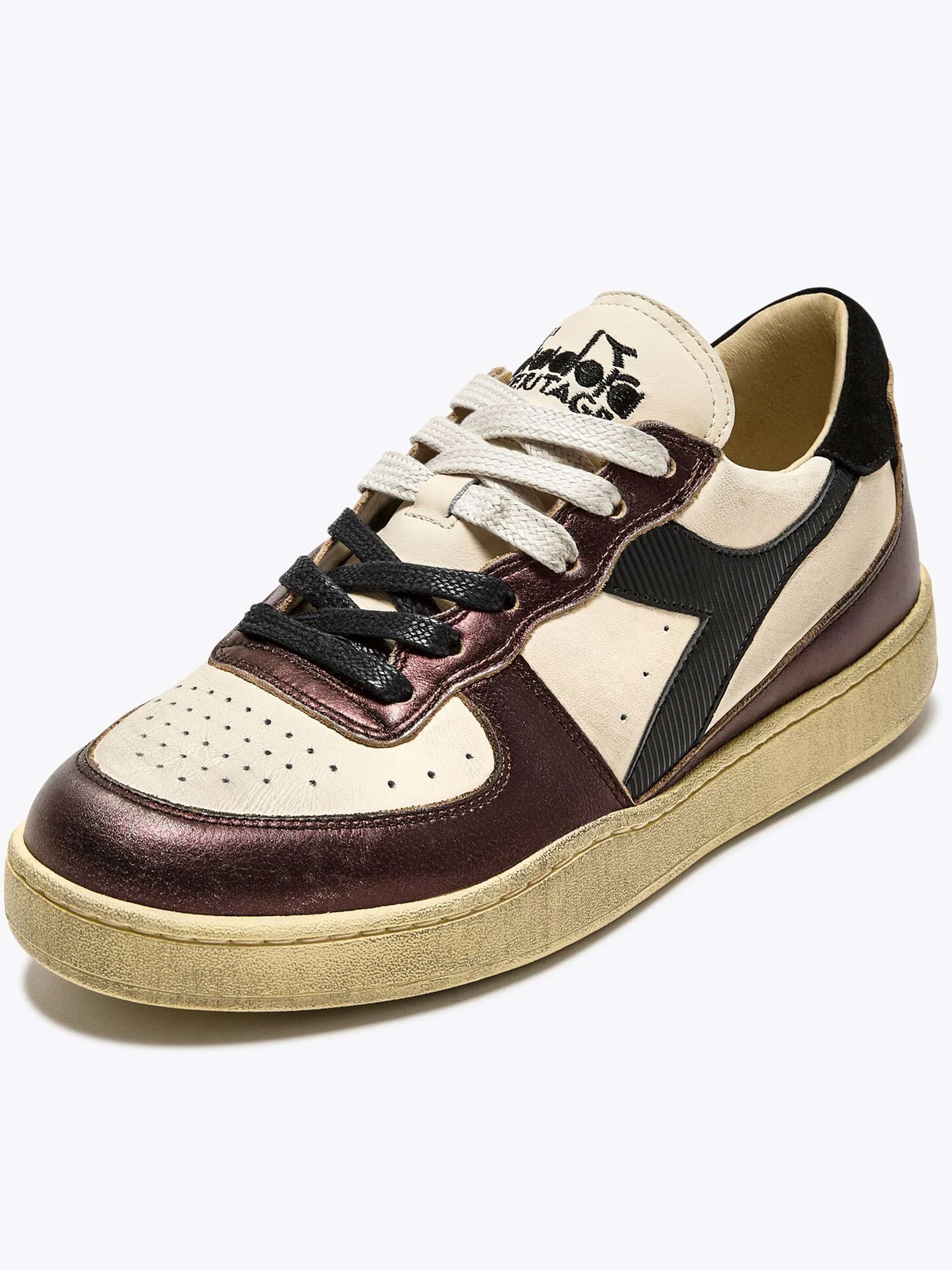 Diadora presents Mi Basket Low sneakers in premium full-grain laminated leather, with suede, stone washed and wax treatment interventions.