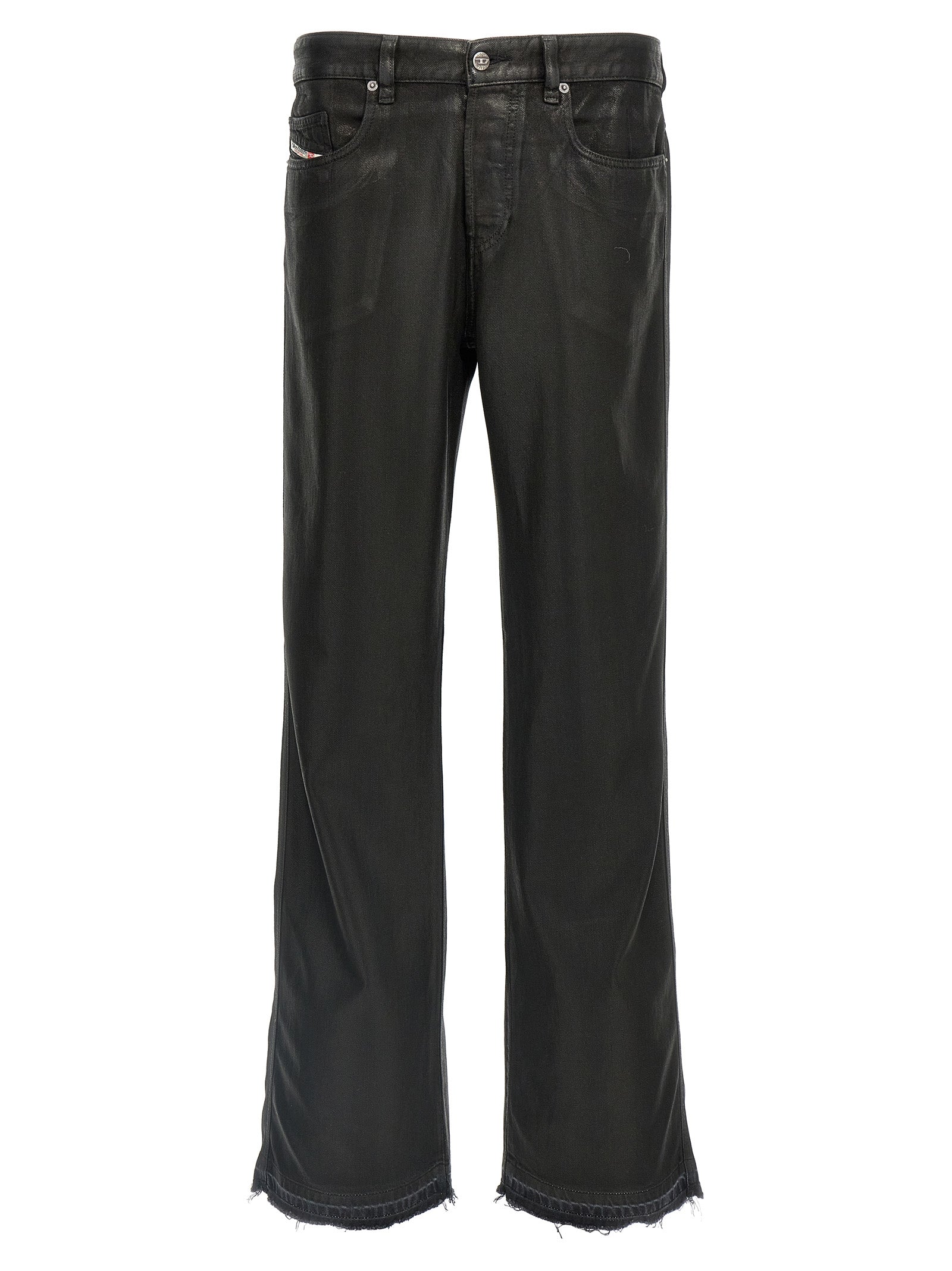 Dżinsy „1998 D-Buck” w powlekanej mieszance bawełnianej efektu z zamknięciem przycisku, pięć kieszeni, noga bojowa z postrzępionym rąbkiem, model w talii.