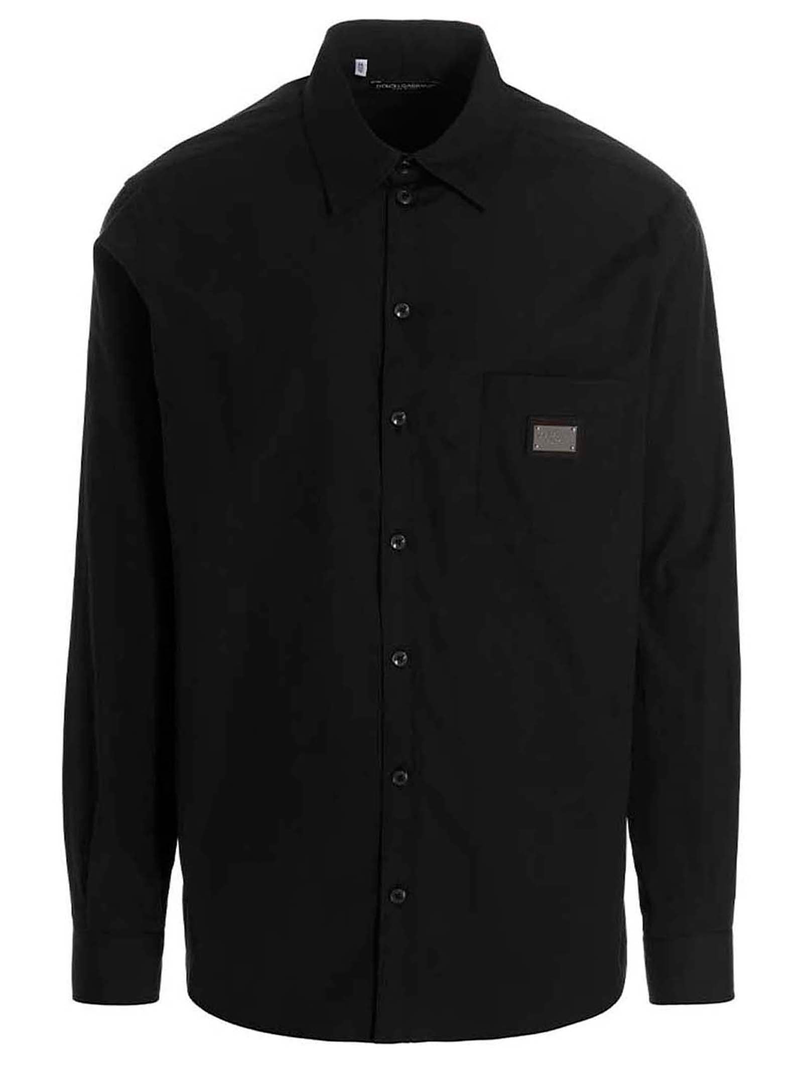 Bawełniana popelowa koszula „DG Essential” z zamknięciem guzików, kieszeń na klatkę piersiową z logo płytki logo, długie rękawy mankietowe.