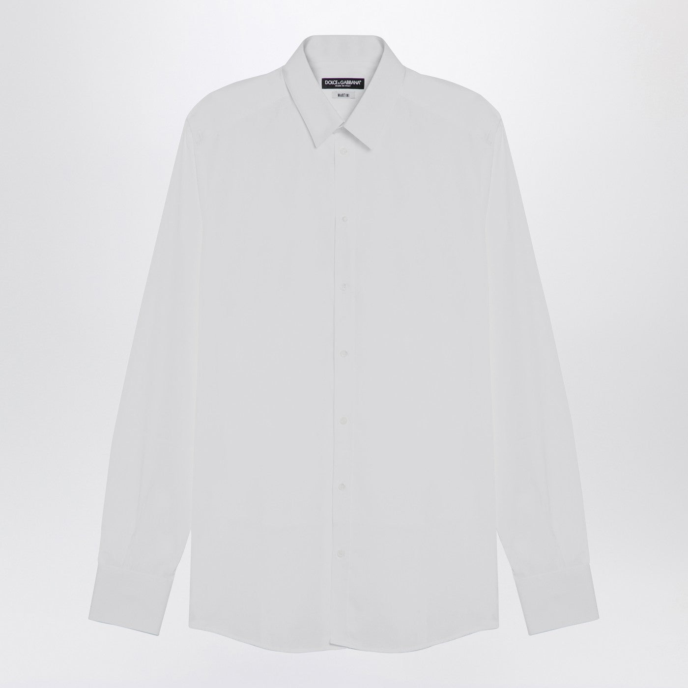 Biała bawełniana koszula z Dolce & Gabbana z klasycznym kołnierzem, długie rękawy z zapinanymi mankietami, przednim guzikiem i zakrzywionym rąbkiem.