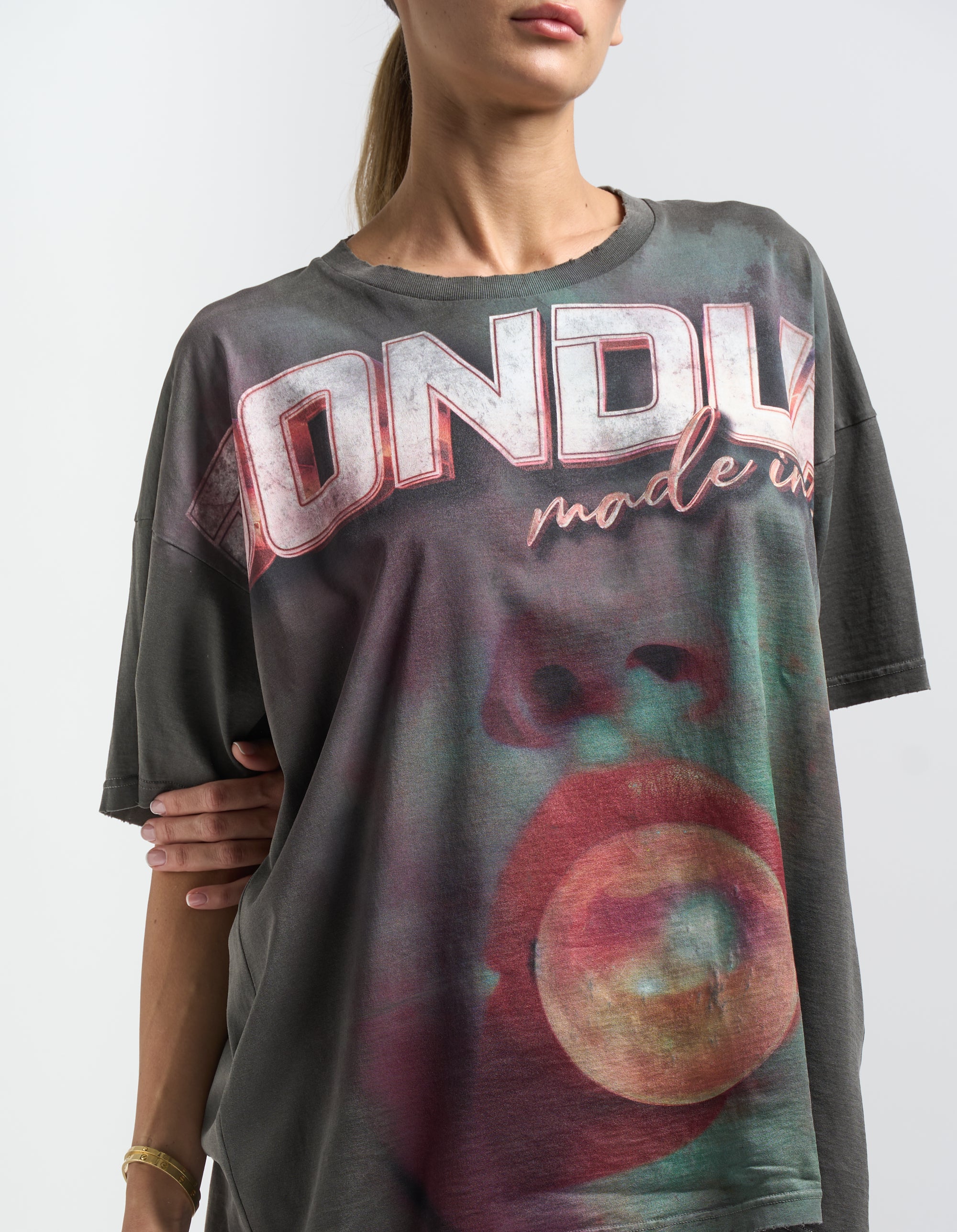 Koszulka oversifed Crew Scyk z krótkimi rękawami i nadrukiem logo z przodu. Bawełniana koszulka.