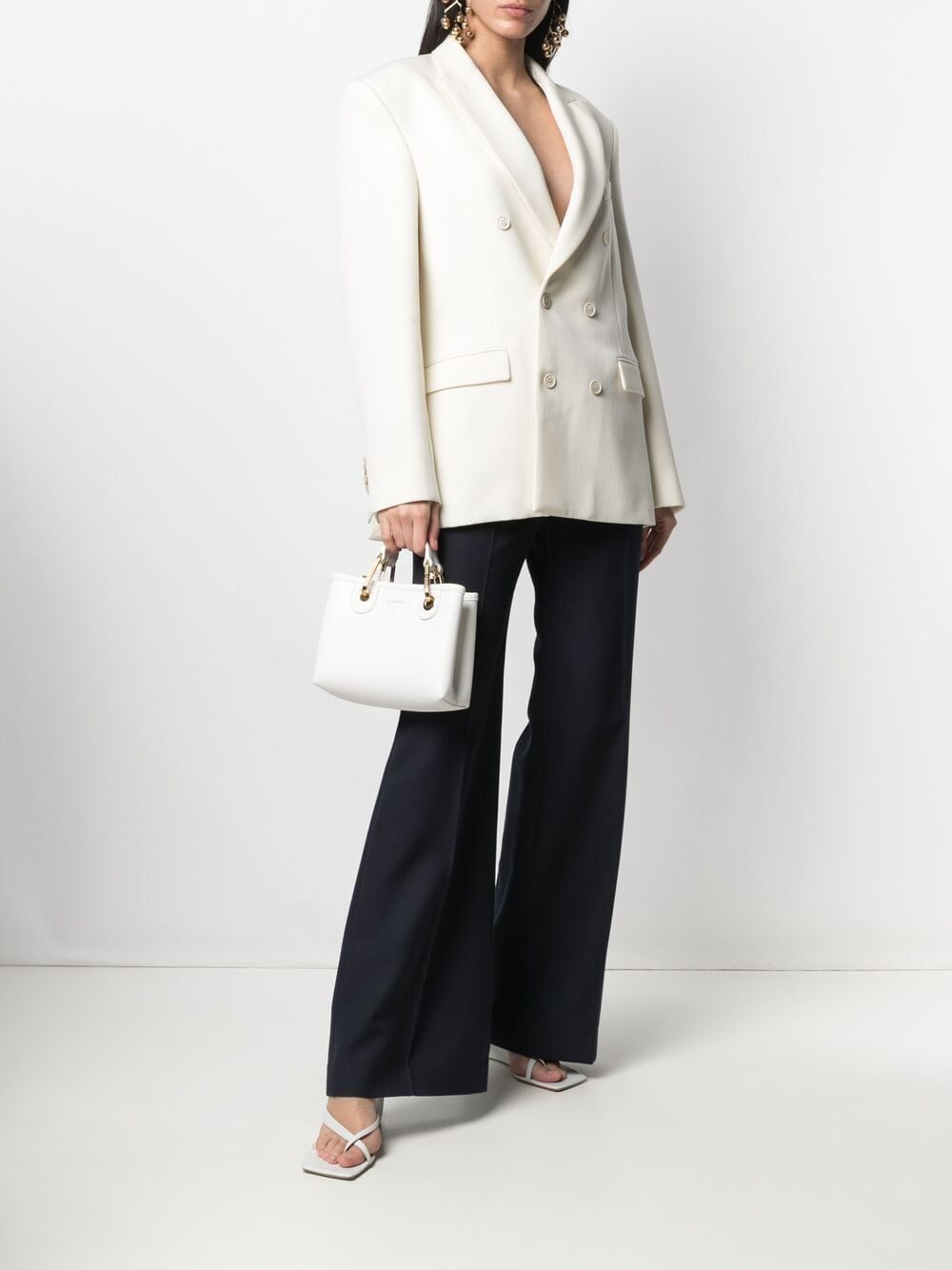 Biała faux skórzana torba z logo z logo z Emporio Armani z napisem logo złotym, sprzętem złotym, dwa górne uchwyty, logo-wydzielony pasek na ramię, regulowany pasek na ramię, mocowanie magnetyczne, główny przedział i wewnętrzna kieszeń na błyskawice. Pozytywnie świadomy: ten produkt jest przyjazny dla wegan, więc możesz być pewien, że twój wybór pomaga chronić dobrostan zwierząt.