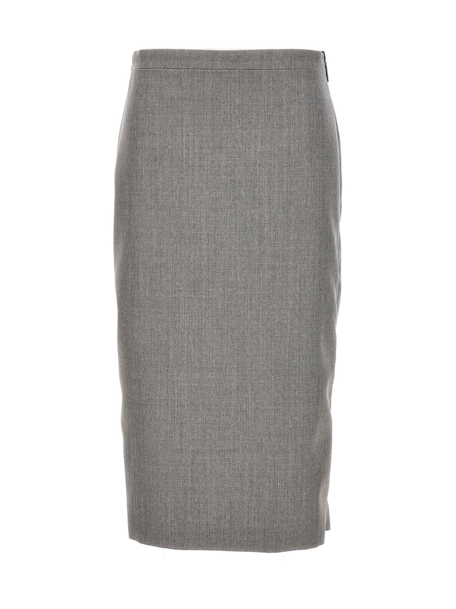 Podwójna satyna i wełniana spódnica gabardine z stylem MIDI, detal z boku i logo ściągacza.