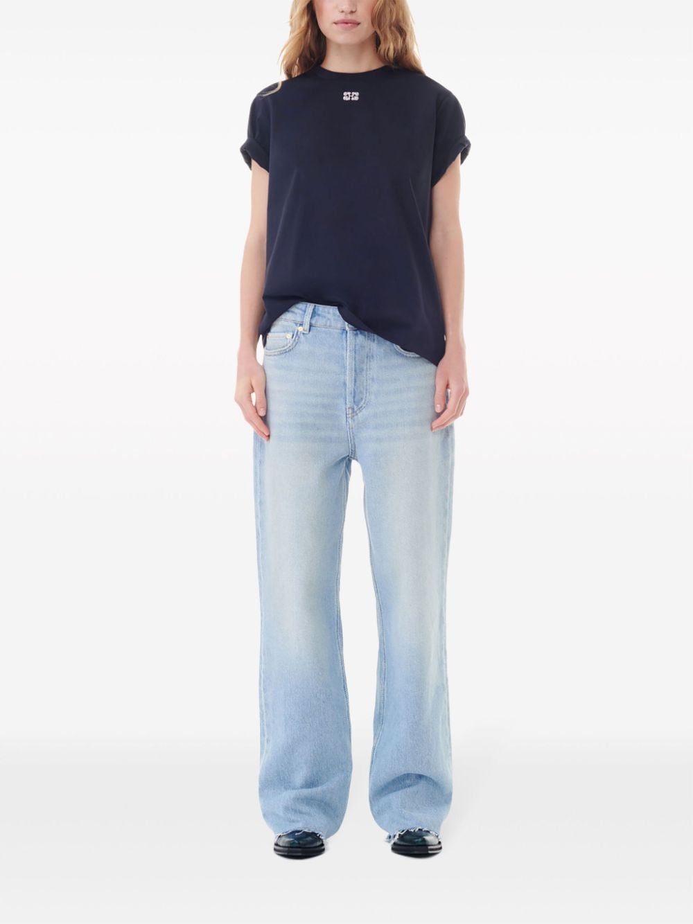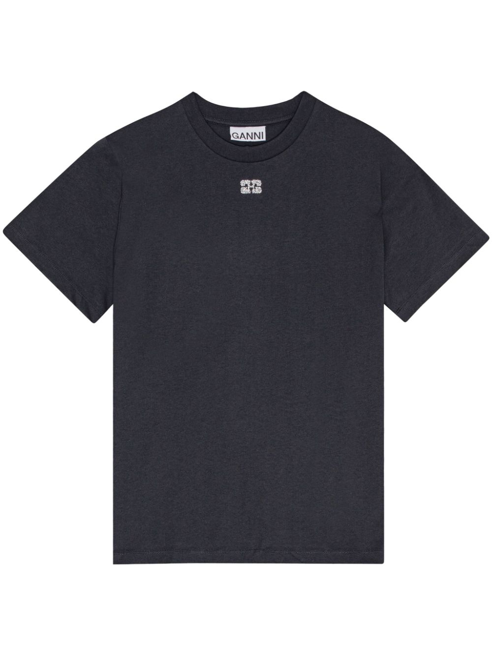 ciemnoszare organiczne bawełniane bawełniane konsekwencje logo ozdobność Rhinestone Crew Szyja Krótkie rękawy proste rąbek Ten przedmiot jest wykonany z co najmniej 50% materiałów organicznych. Dowiedz się więcej o tym, co czyni produkt świadomy na naszej stronie świadomych kryteriów