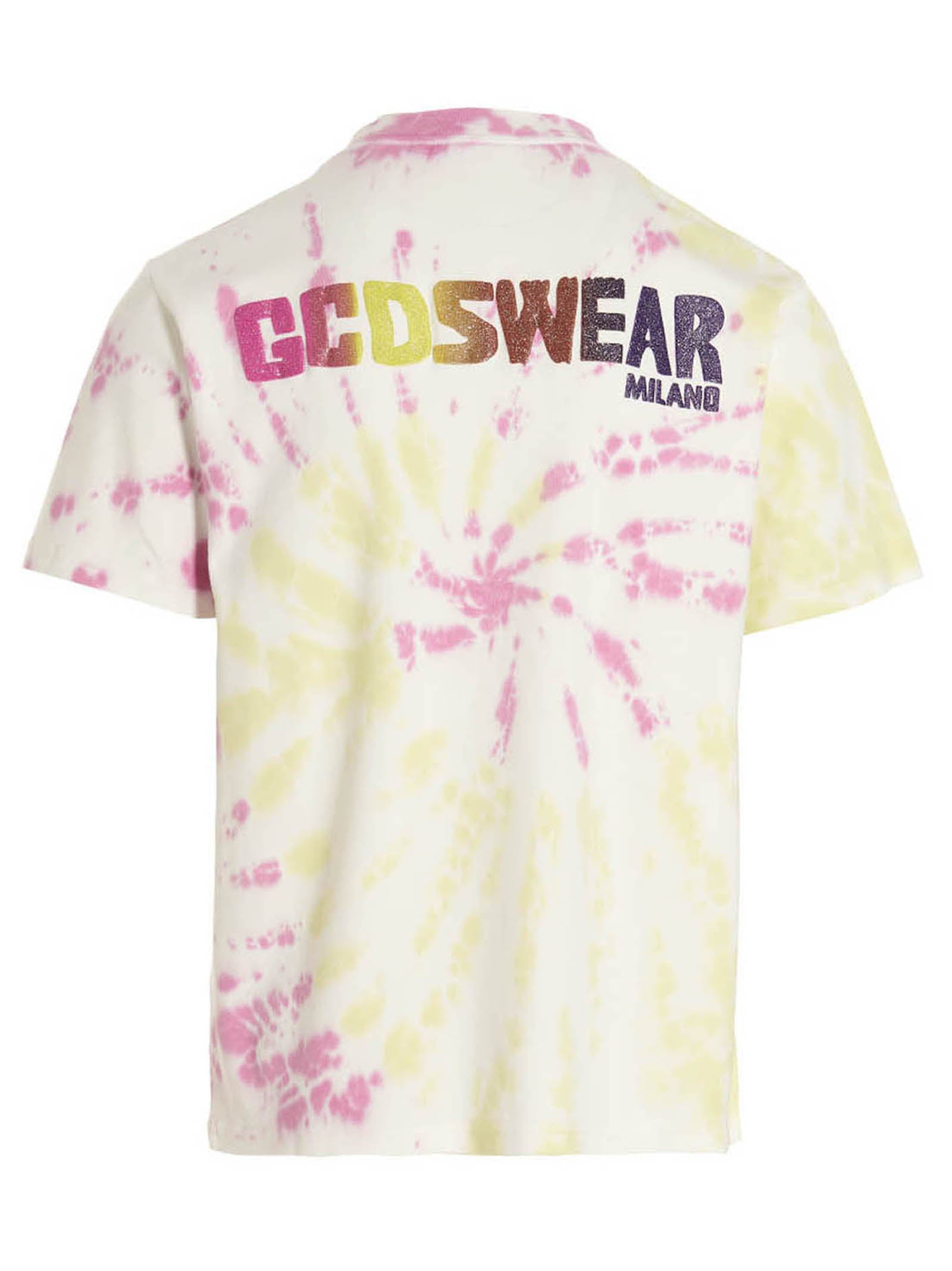 T-shirt z logo z logo z przodu i tylnym wydrukiem logo z logo GCDS Trzyma barwnika, a drukowane są załogi i krótkie rękawy.