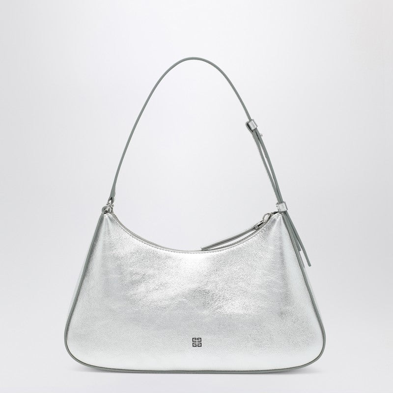 Givenchy teksturowana skórzana torba na ramię w srebrnym, zawierającym regulowany uchwyt z klamrą, frontowym literą logo, urokami Lucky Lock, górnym zamykaniem zamka i pojedynczy przedział.