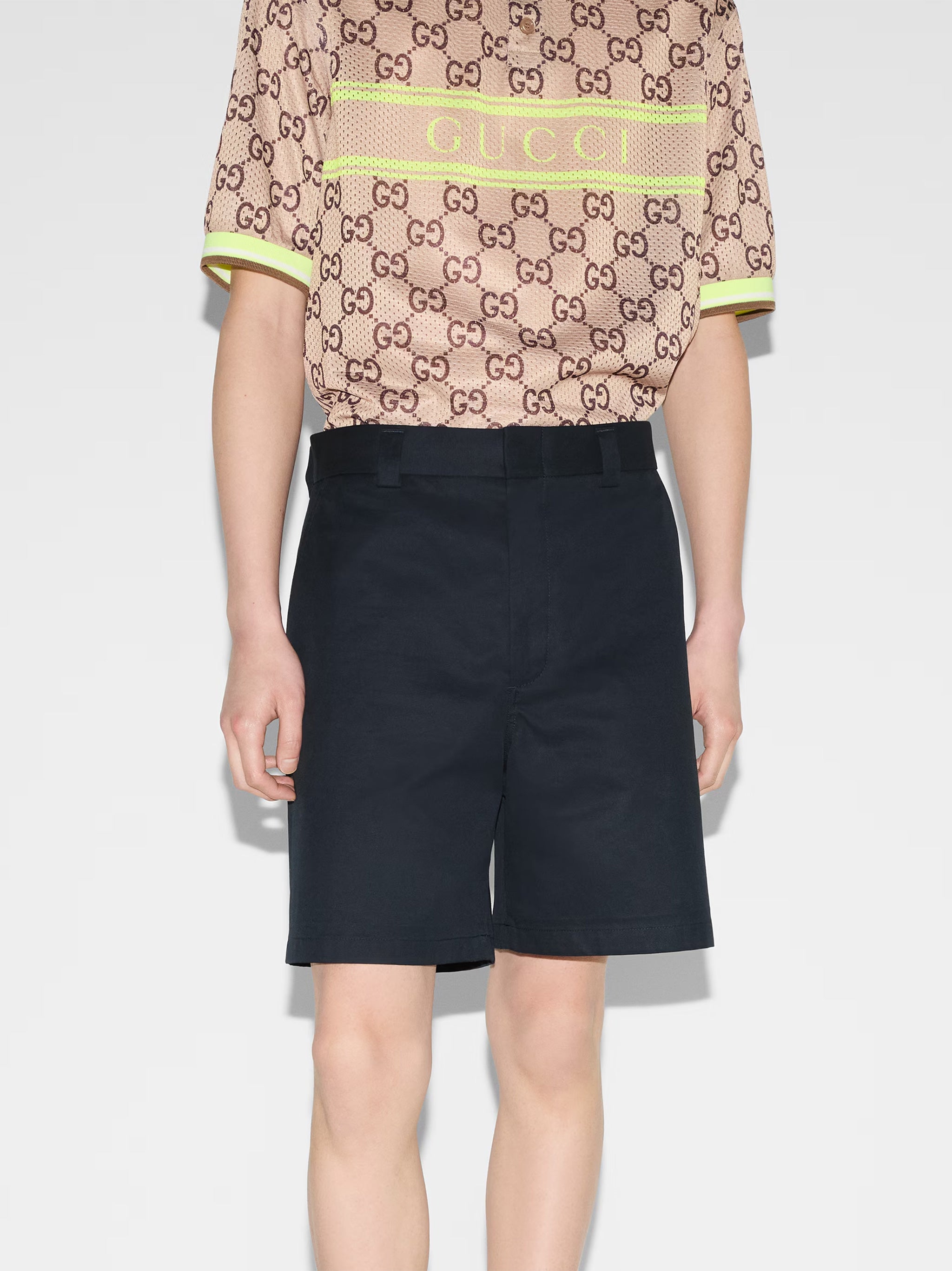 Gucci przedstawia te szorty wykonane z podwójnej bawełny Twill z etykietą Gucci.