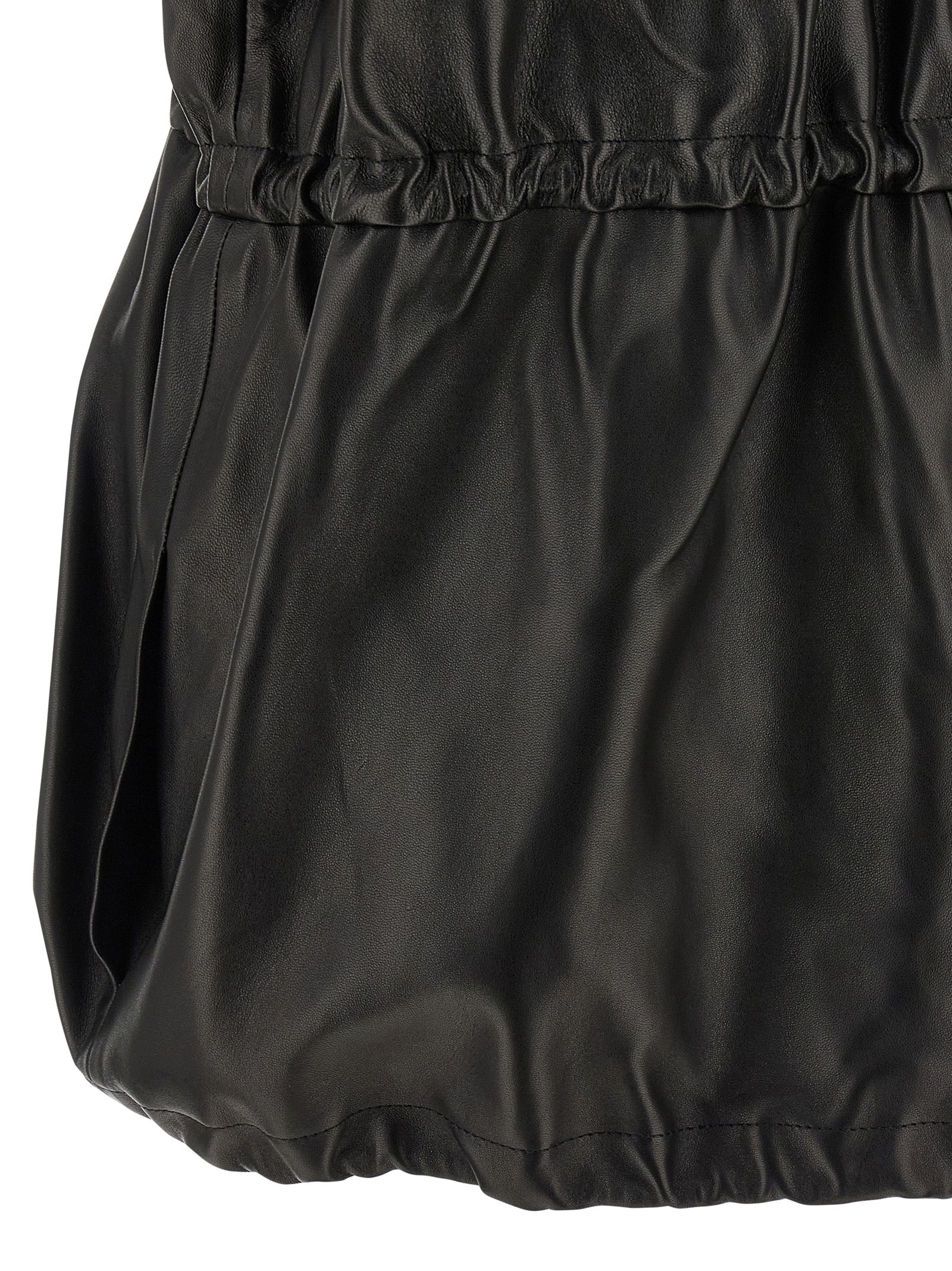 Kurtka „07” peplos w sześciokastycznej skórze, wysoka szyja z falbanami, przednie zamykanie zamka, sznurka na kołnierzu - talia - rąbek, kieszenie, szerokie krótkie rękawy, bez lewy.