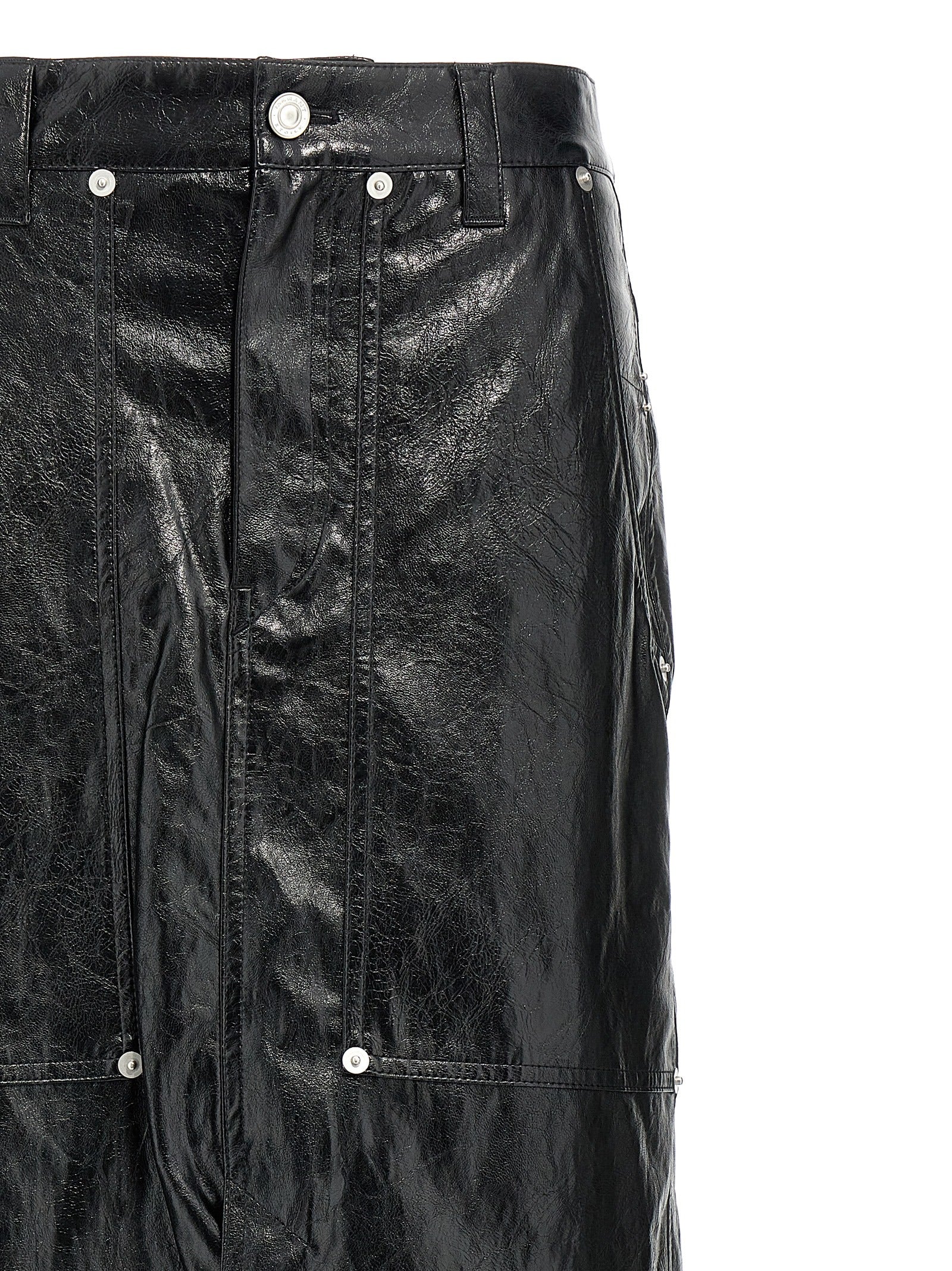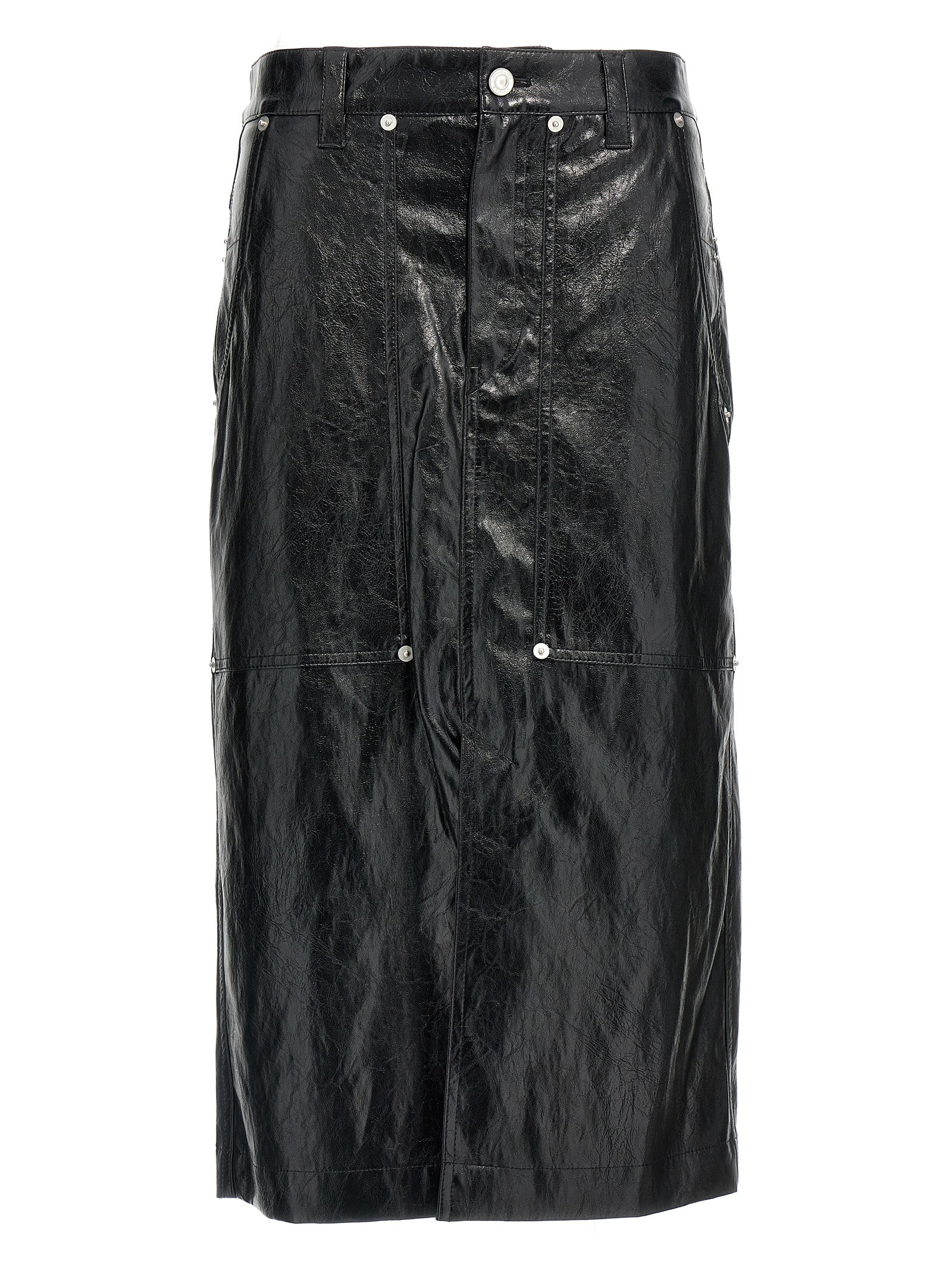 Spódnica „Angele” w skórzanym materiale z zamkiem i zamknięciem guzików, kieszenie.
