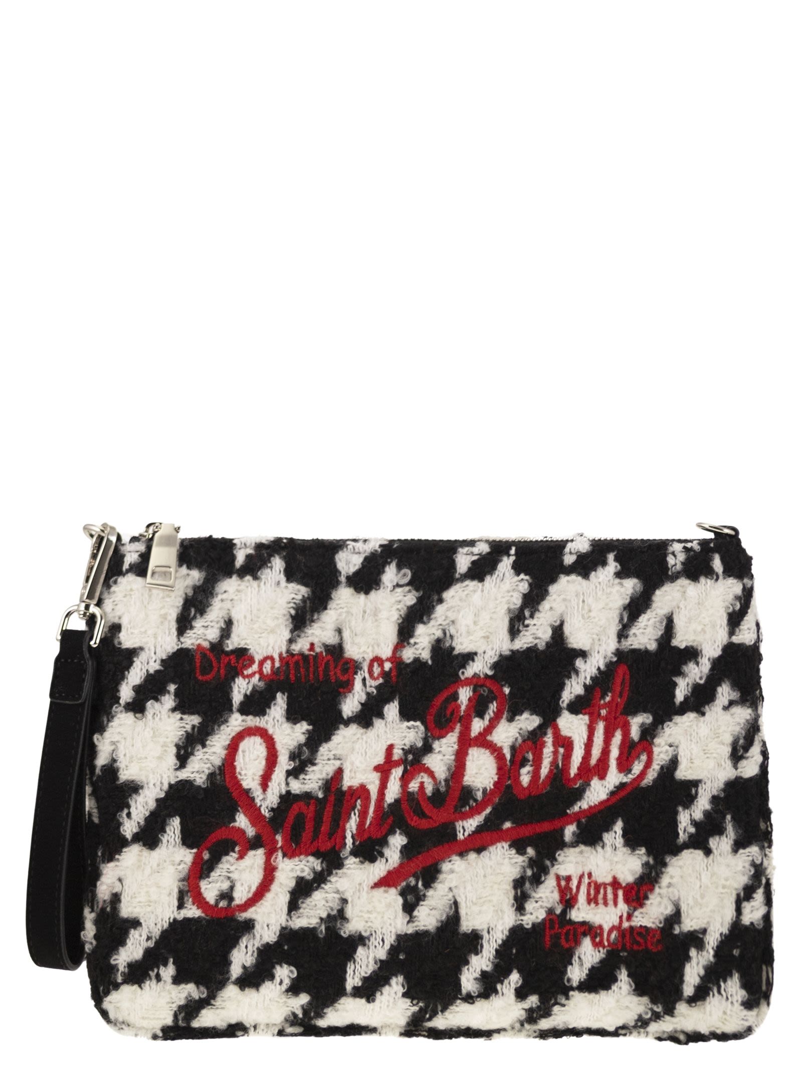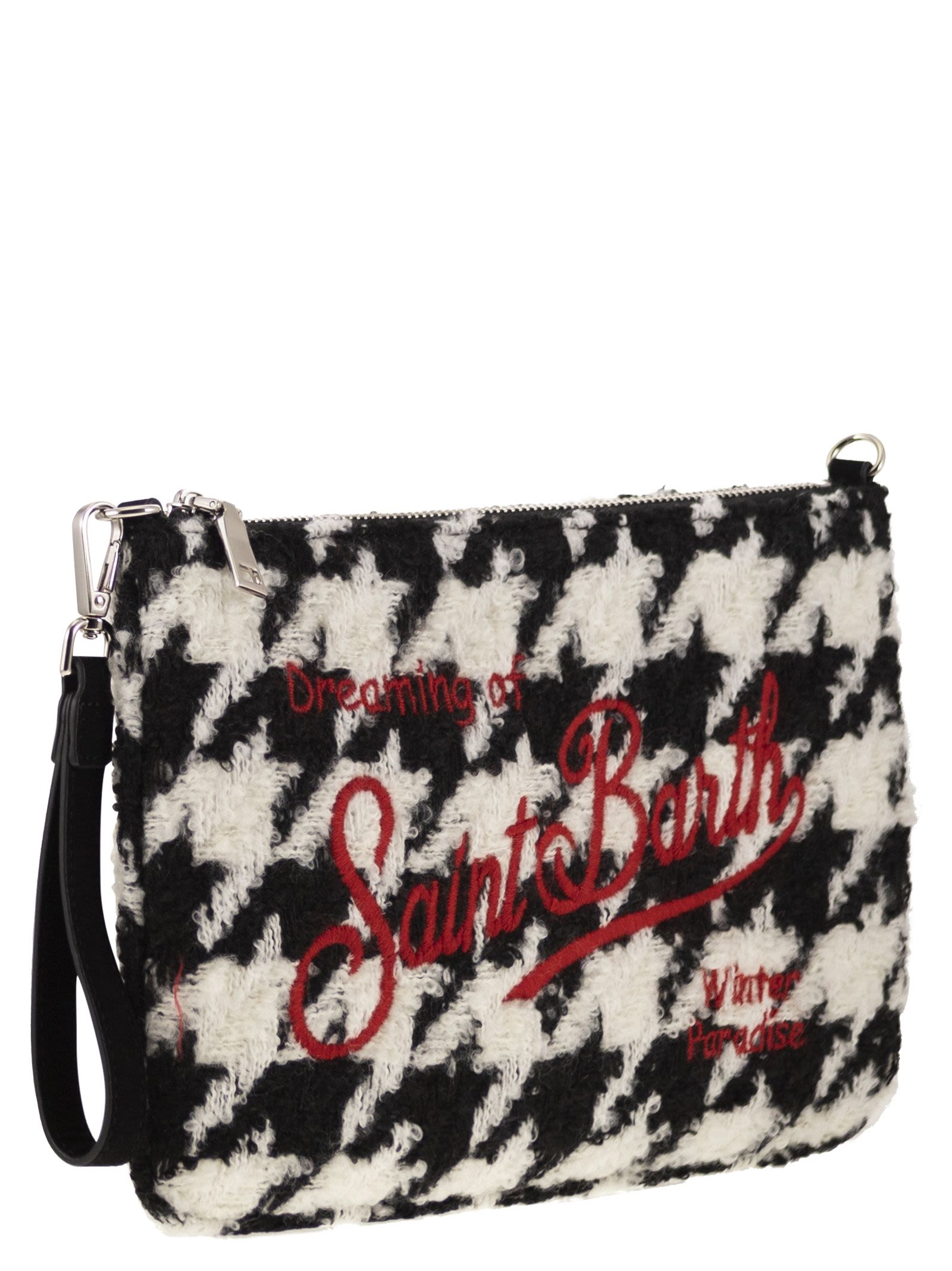 Clutch bag in soft fabric with a tweed pattern, a must-have for the winter season, small and practical thanks to the zip fastening and the lace to put on your wrist to carry it with you at all times. You can also wear it over the shoulder for added convenience. - Saint Barth logo - Wrist strap - Shoulder strap DESIGNER ID: PAR0009 01512G