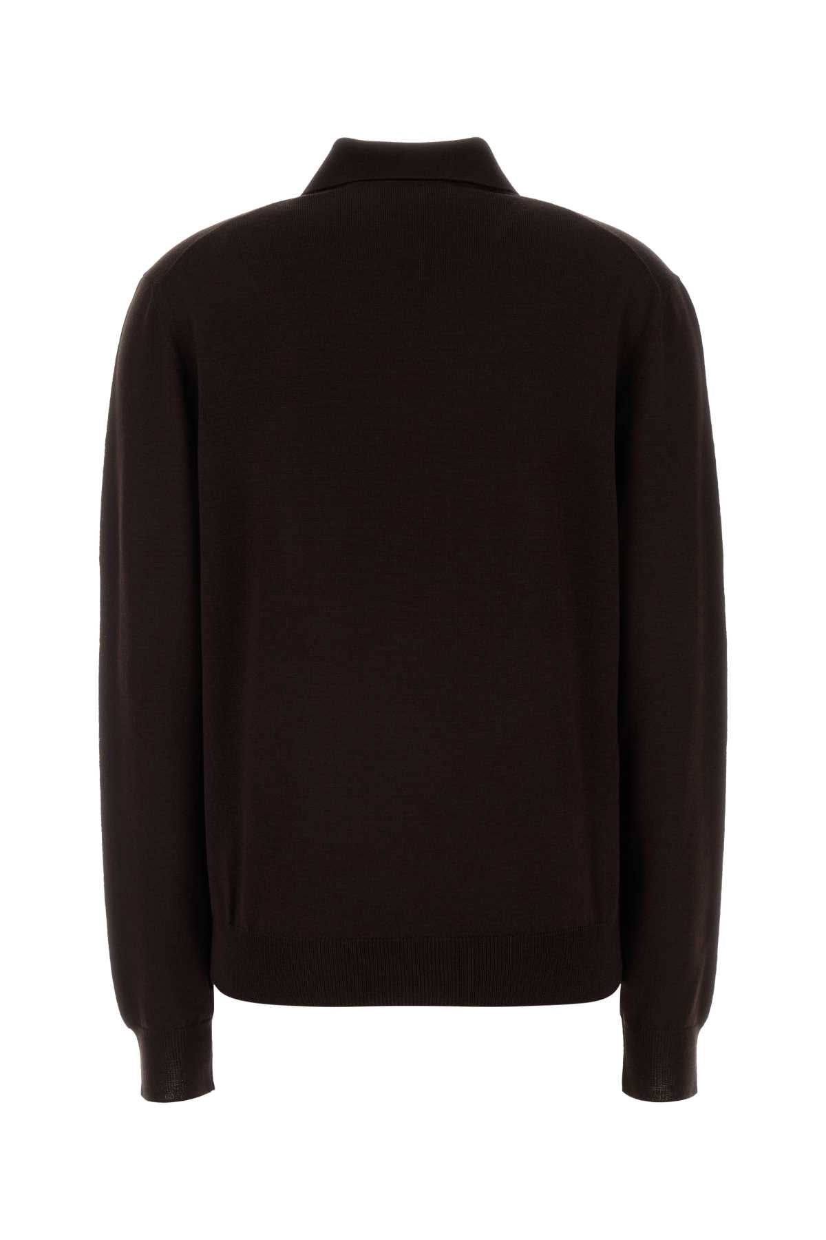 Koszulka polo z wełny w kolorze czekoladowym