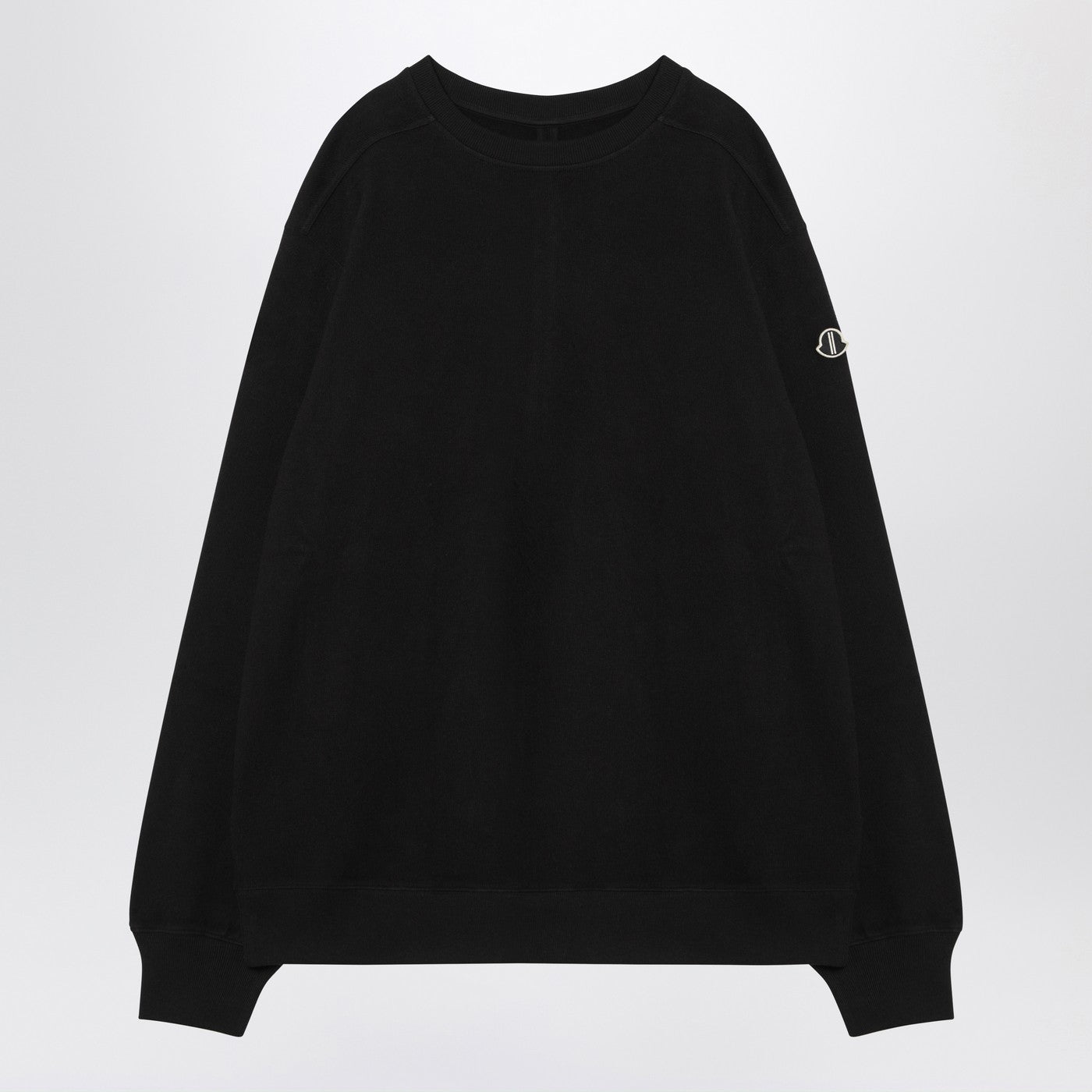 Bluza Crewneck autorstwa Monclera we współpracy z Rickiem Owensem w Black Jersey, z logo na rękawie, żebrowanym kołnierzu, mankiet i rąbku.