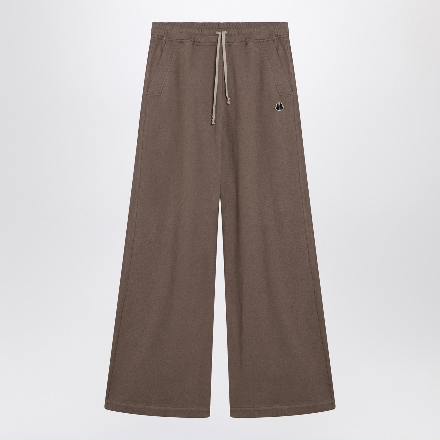 Bawełniane spodnie w kolorze kurzu Monclera we współpracy z Rickiem Owensem z rozszerzonym wzorem, elastycznym paskiem z sznurkiem, bocznymi kieszeniami do kaset, bocznej łatki logo i kieszeniami klap z tyłu.