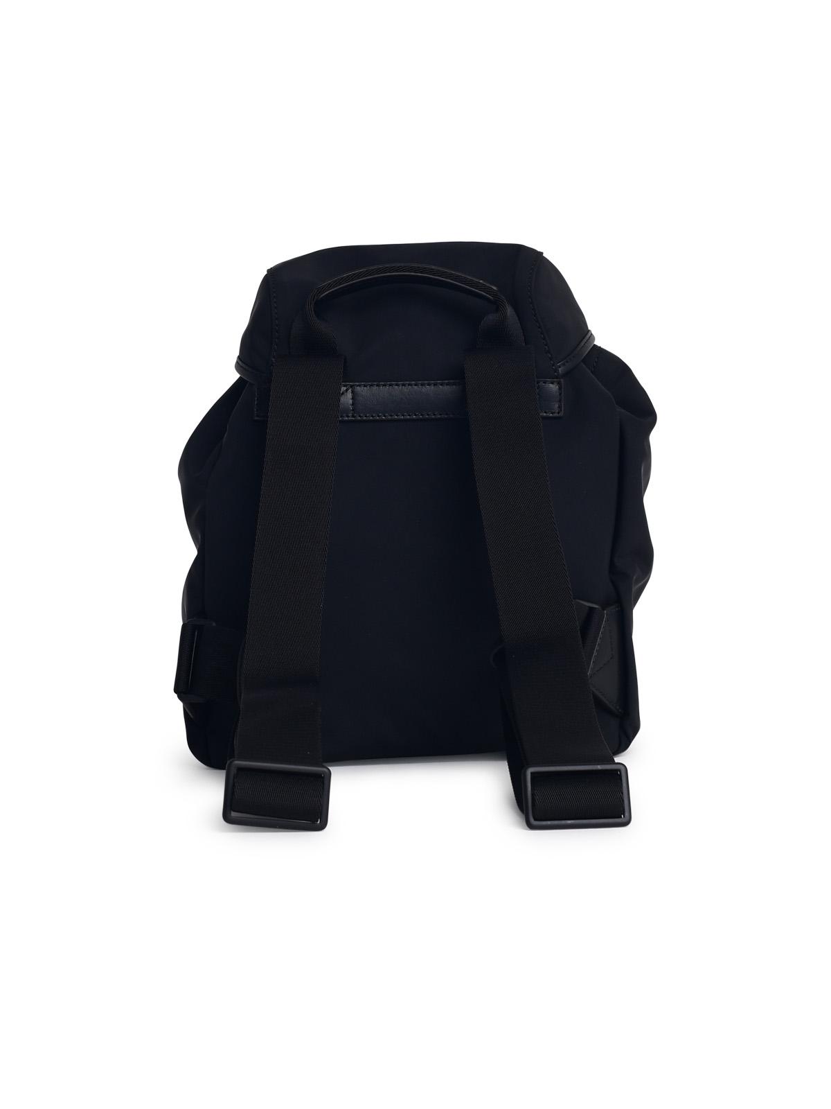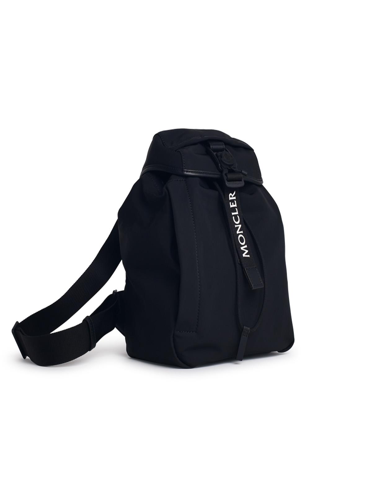 Made of water-repellent nylon, drawstring closure with leather trims, magnetic pin closure, logo fabric buckle, adjustable shoulder straps, single inner compartment, slit pocket.\n30 x 22 x 13 cm