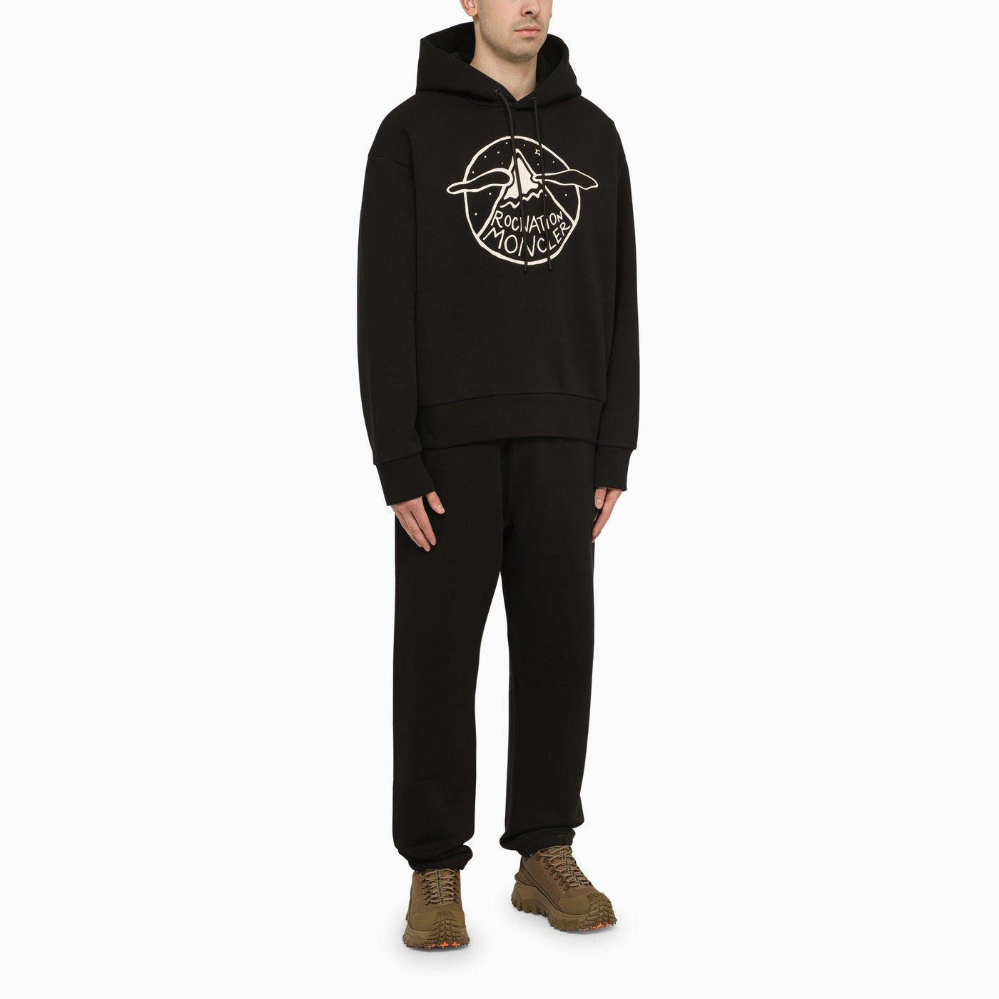 Sportowe czarne bawełniane spodnie z Moncler X Roc Nation zaprojektowane przez Jay-Z zawierające elastyczne pasy, kieszenie na bok, kieszeni z tyłu i logo ton-na-ton-na-tone z przodu.