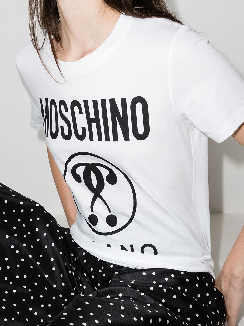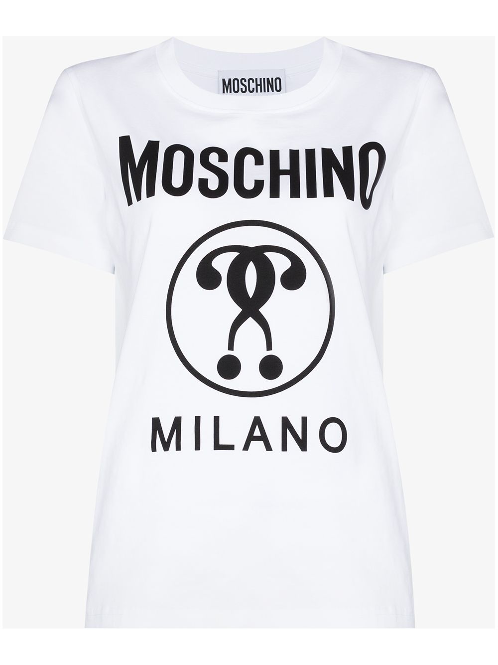 Round neckline, short sleeves and logo print on the chest. Material: cotton. Color: white.