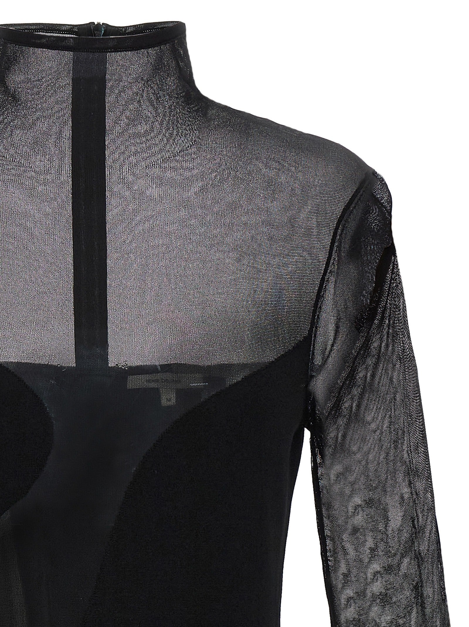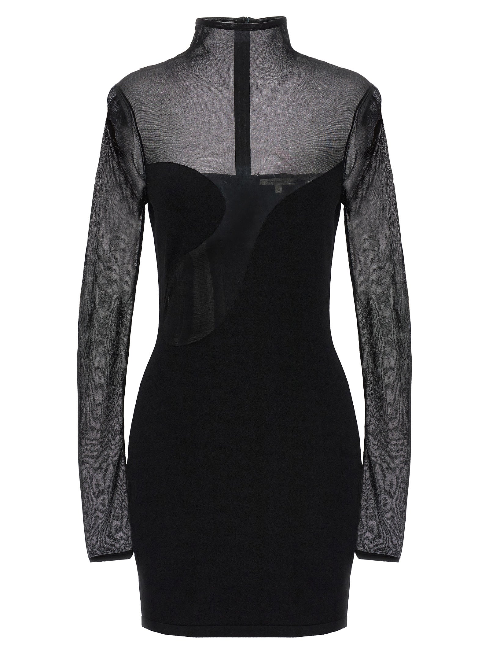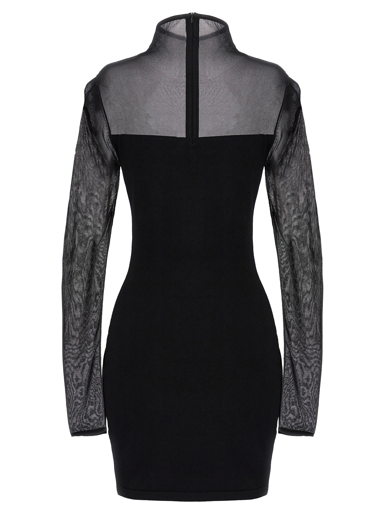 Dresowa sukienka „dopasowana” z przezroczystą wkładką z siatki, wysokim szyją, długimi rękawami i zamknięciem zapinu na zamek błyskawiczny.