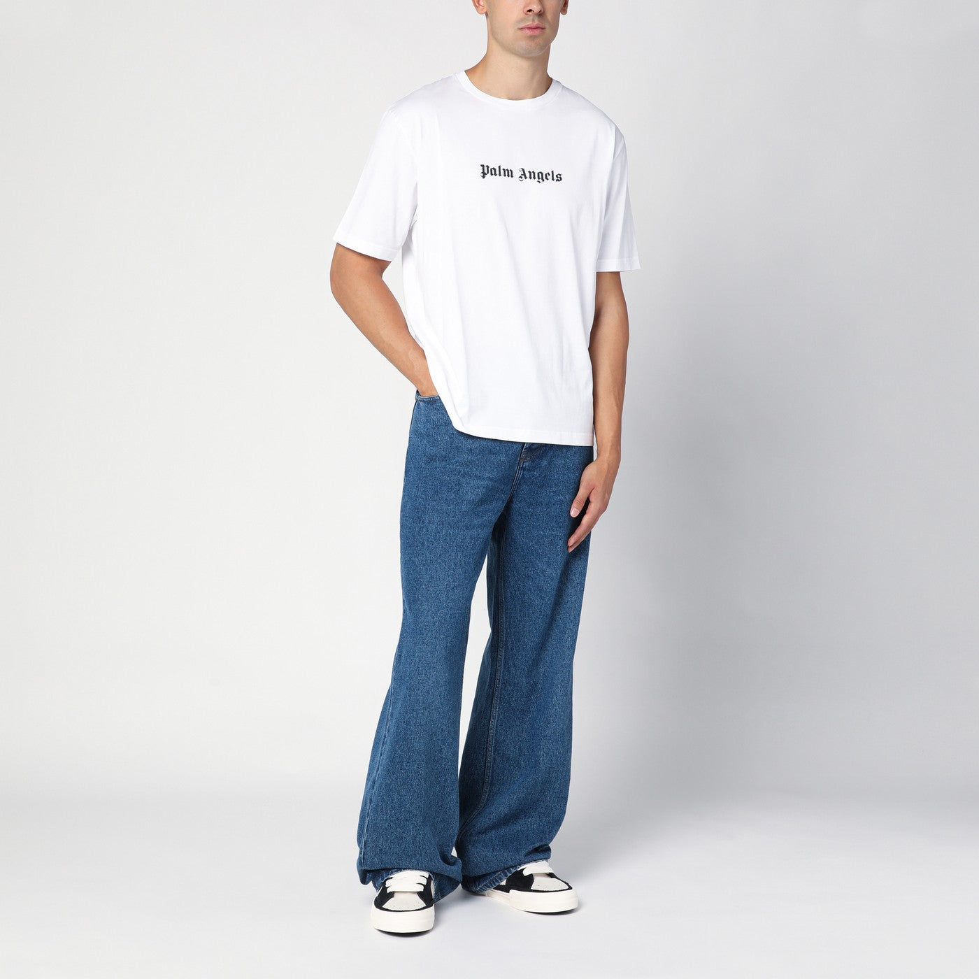 T-shirt z drewnem załogi Palm Angels w białej bawełnie, zawierający nadruk logo z przodu, krótkie rękawy i prosty rąbek.