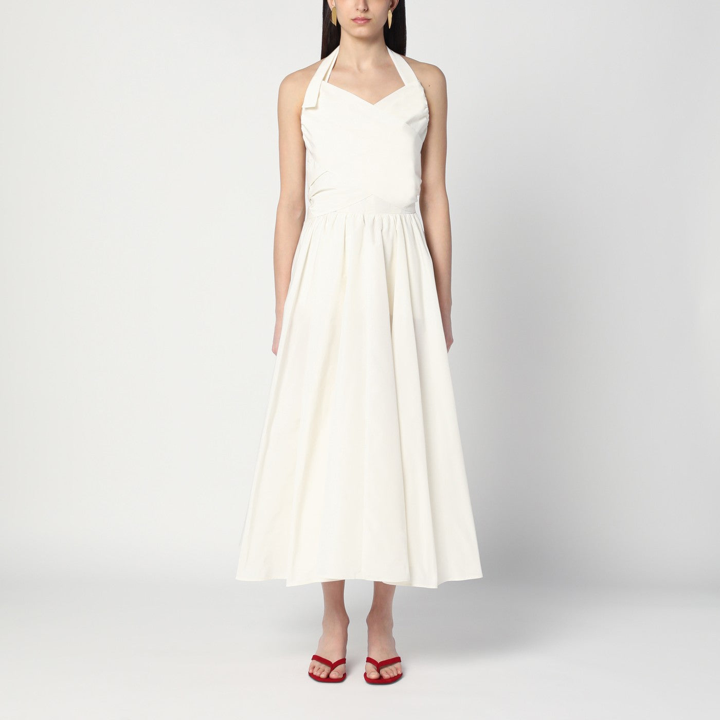 Sukienka Faille z kości słoniowej. Długość kostki. Gros-ziarnina na szyi. Drapowany stanik crossover, który wiąże z tyłu. Elastyczne plecy. Obszerna spódnica.