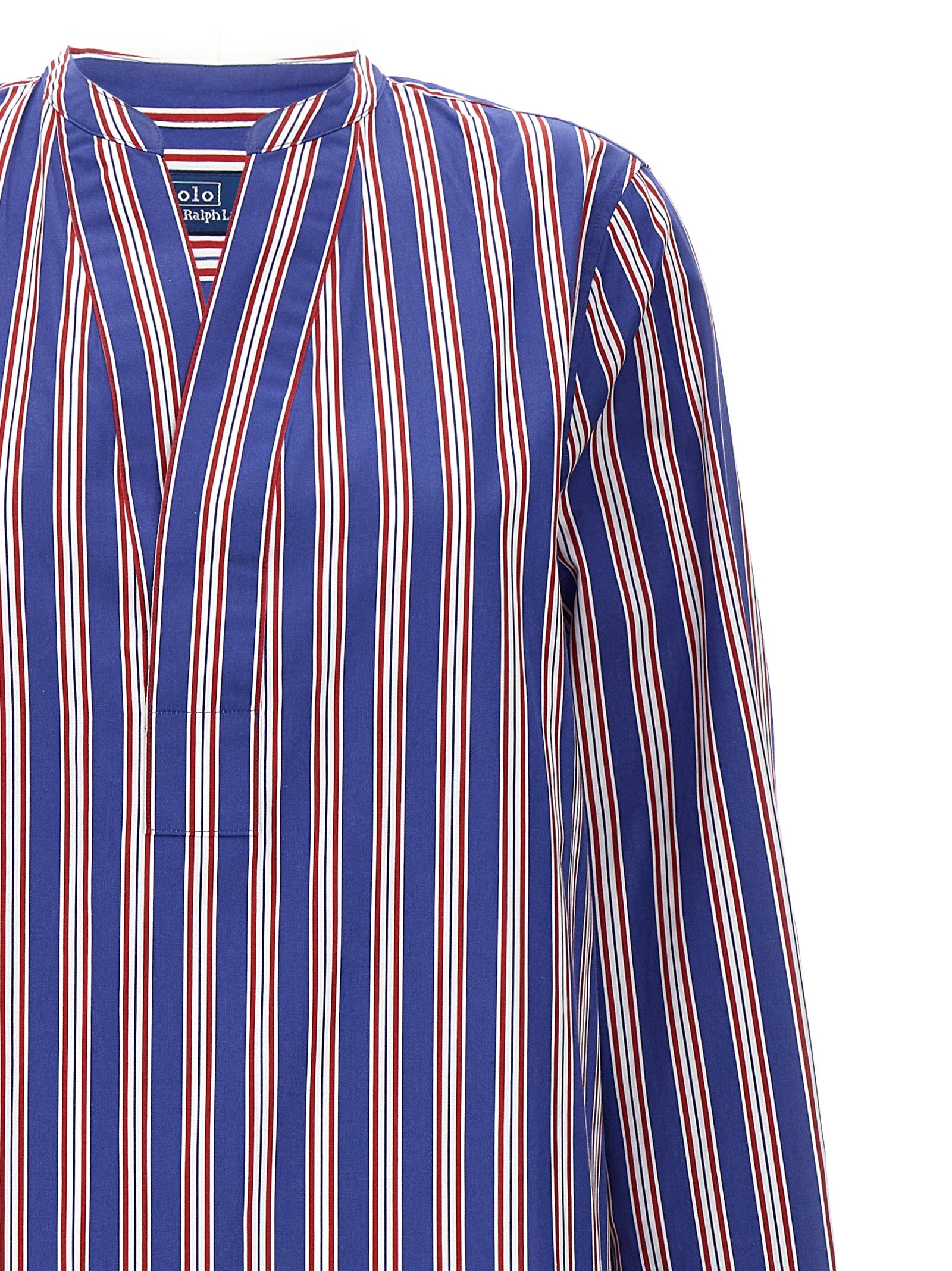 Bawełniana sukienka w paski, dekolt w stylu, długie rękawy mankietowe, kieszenie.