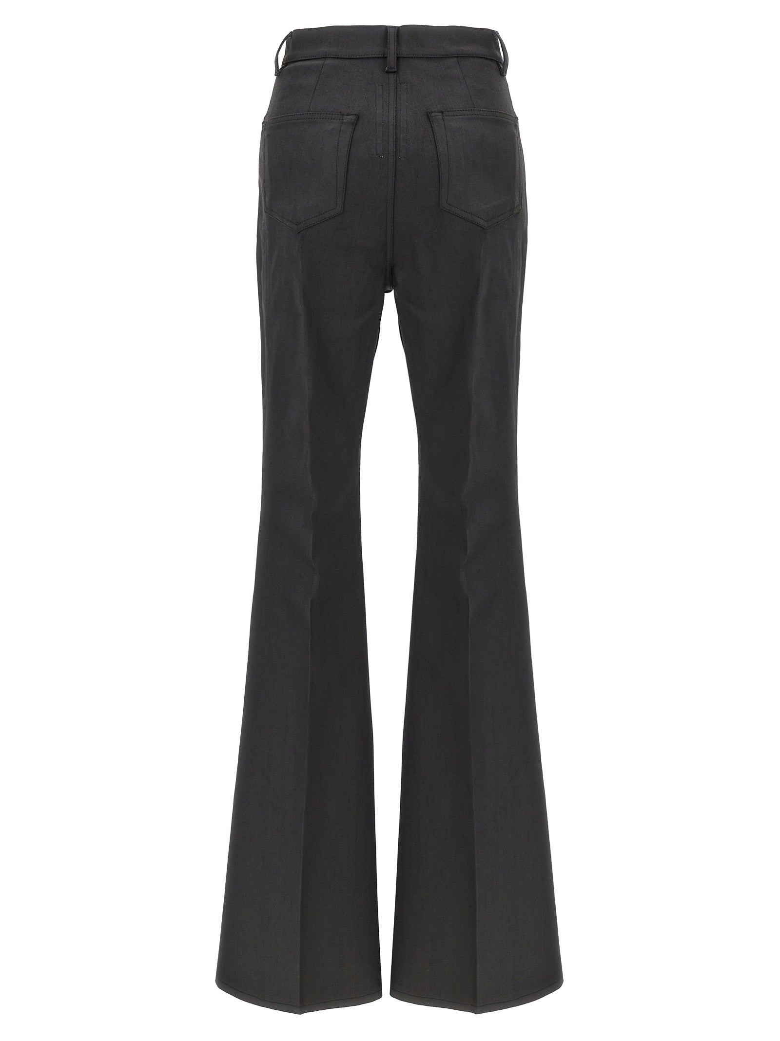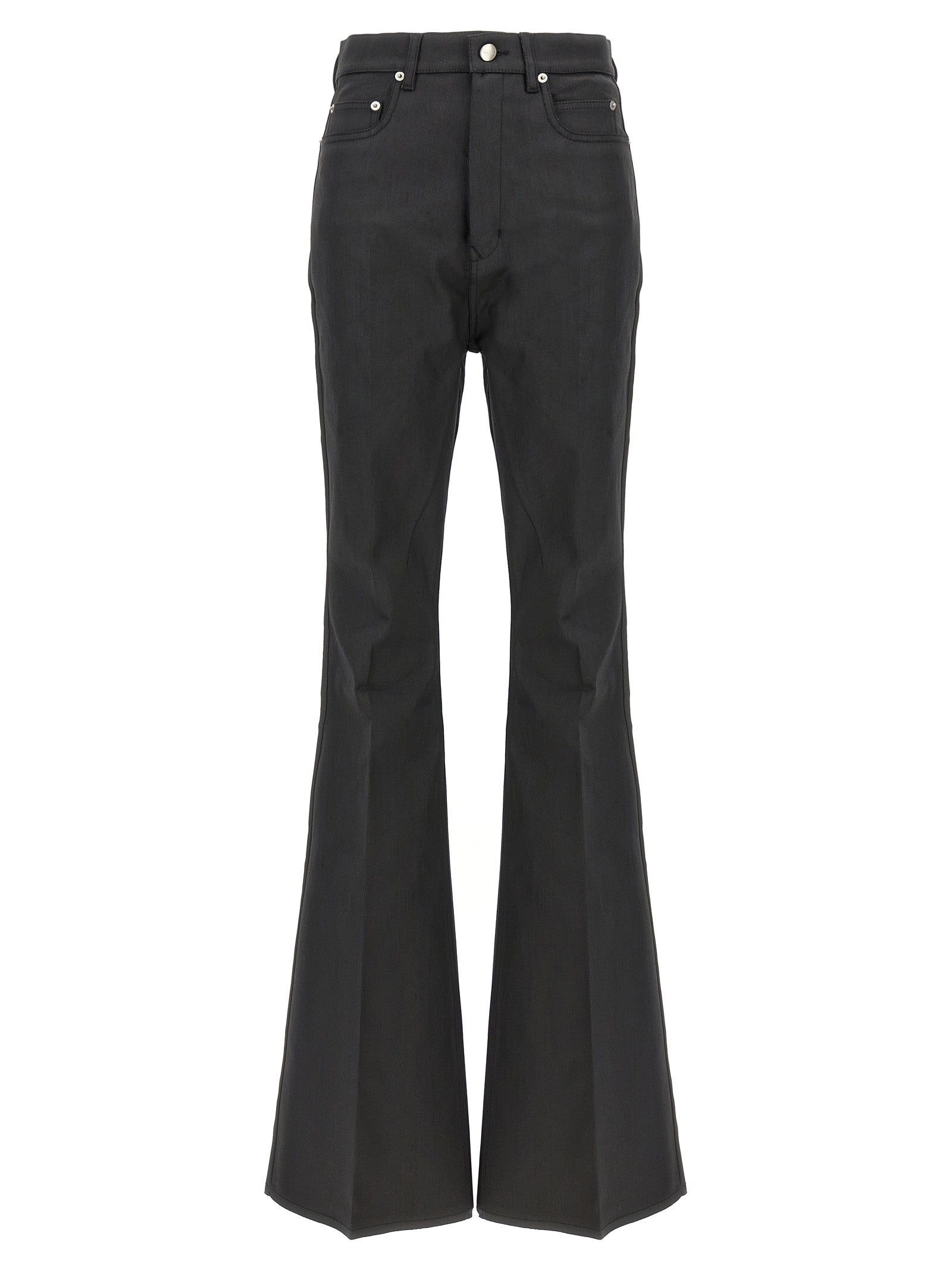 „Bolan Bootcut” powlekane dżinsowe dżinsowe dżinsowe dżinsowe dżinsy, zamykanie zamka i guziki, pięć kieszeni, rozszerzona noga.