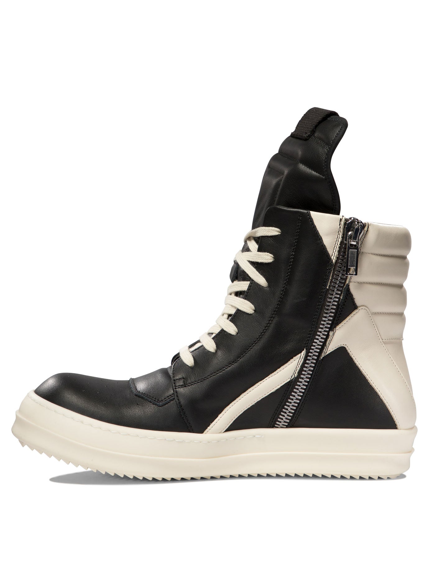 Trampki „Geobasket” Ricka Owensa Drkshdw reprezentują idealne skrzyżowanie innowacji i stylu miejskiego. Z odważnym i współczesnym designem buty przyciągają wzrok swoim unikalnym estetycznym i wyrafinowanym detalami, co czyni je idealnymi dla mężczyzny, który chce się wyróżniać z oryginalnością i charakterem. - Zamknięcie boczne zamek błyskawiczny - Gumowa podeszwa - Perforowany palec u nogi Połącz te trampki z parą czarnych joggerów i dużą bluzą, aby uzyskać swobodny, ale uderzający wygląd. Lub noś je z dżinsami i kurtką bombową na strój, który podąża za najnowszymi trendami streetwearu.