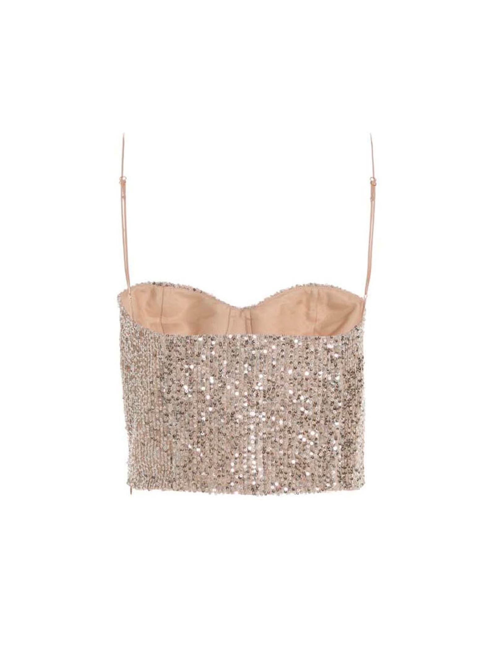 Top cekinowy z dekoltem w kształcie serca, cienkimi paskami, bocznym zamkiem błyskawicznym, przyciętym i szczupłym dopasowaniem.