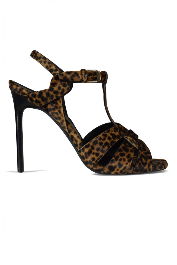 Przejrzające się, regulowane paski kostki z grawerowaną klamrą Saint Laurent Paris.