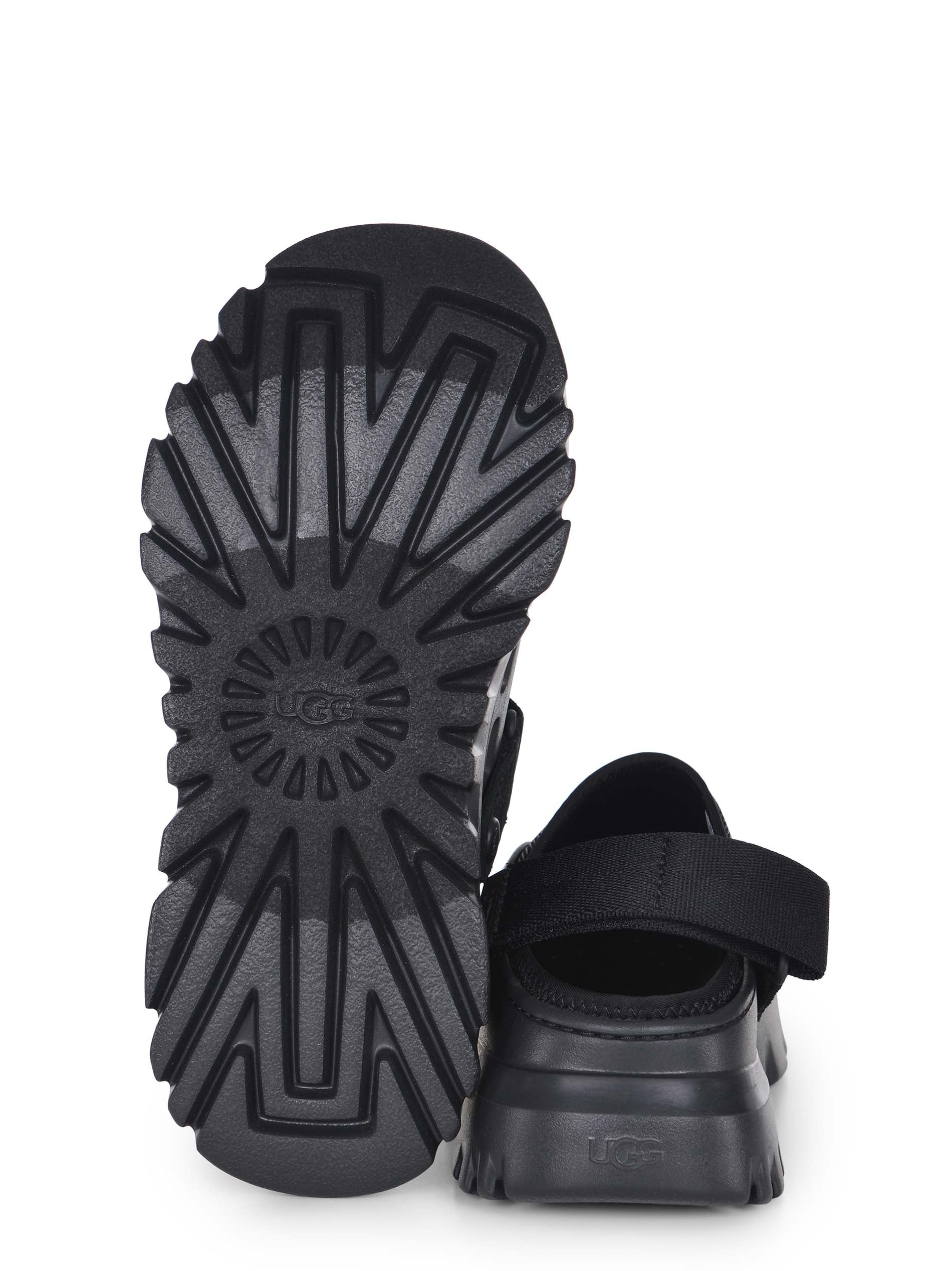 UGG „PeakMod” zatyka z tkaniny i gumowej w kolorze czarnym. Ultralight Eva Sole. Oddychający z boku. Podwyższona guma. Regulowany pasek tylny. Mesh Upper. Górna 80% poliestru górna 100% gumowa