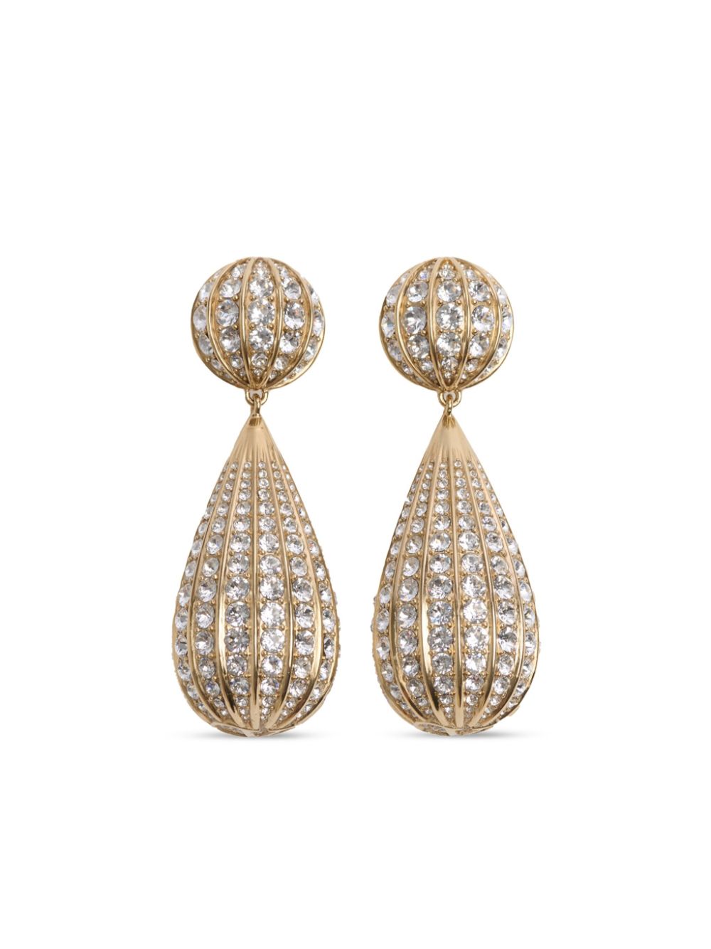 gold-tone gold plated polished finish clip-on design VLogo Signature glass crystal embellishment These earrings come as a pair.
