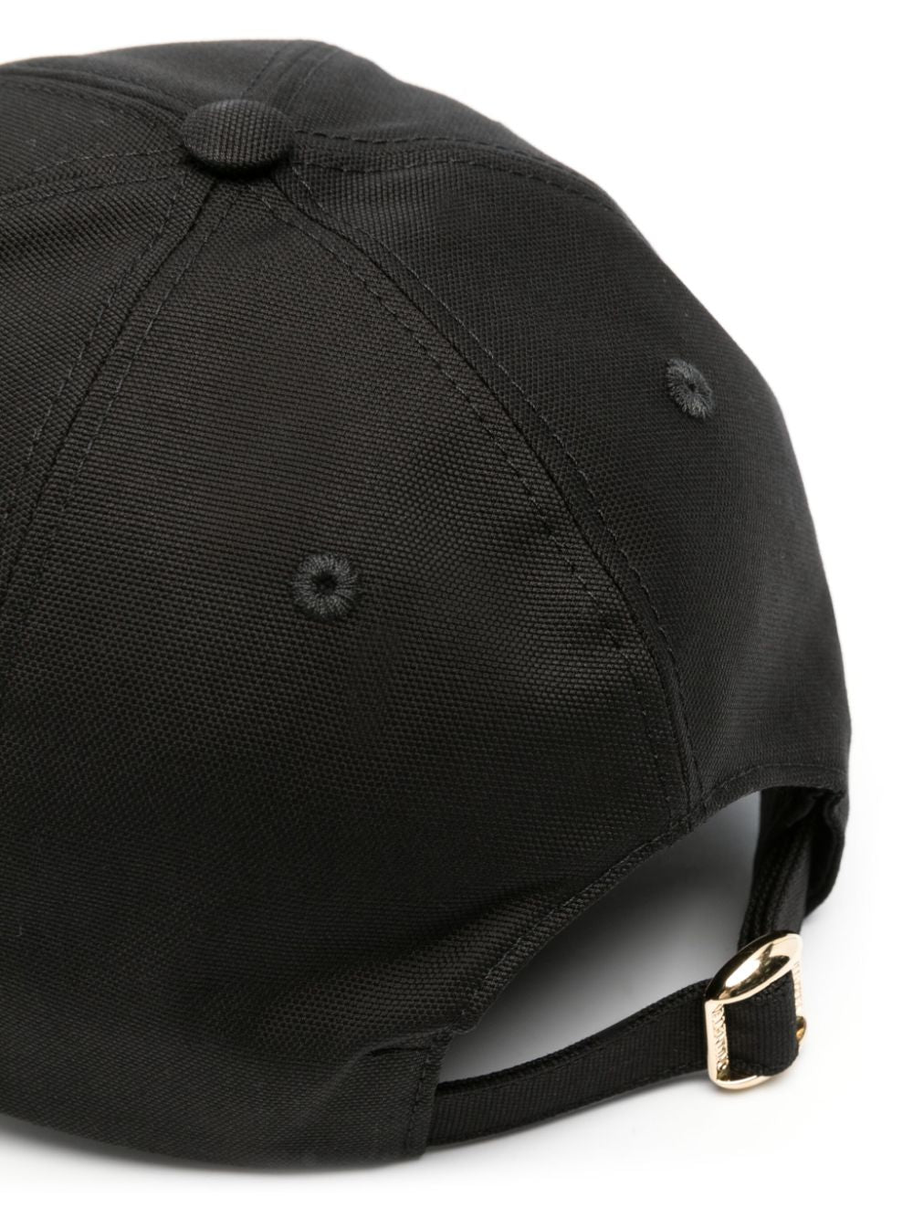 czarny stretton-cotton Twill Weill sześciopanelowy przycisk budowlany przycisk tkaniny na koronowym oczach detale złoty tone vlogo sygnatury logo Zakrzywione szczyt Pełna podszewka logo-logo-tone hardware regulowane mocowanie klamry z tyłu z tyłu