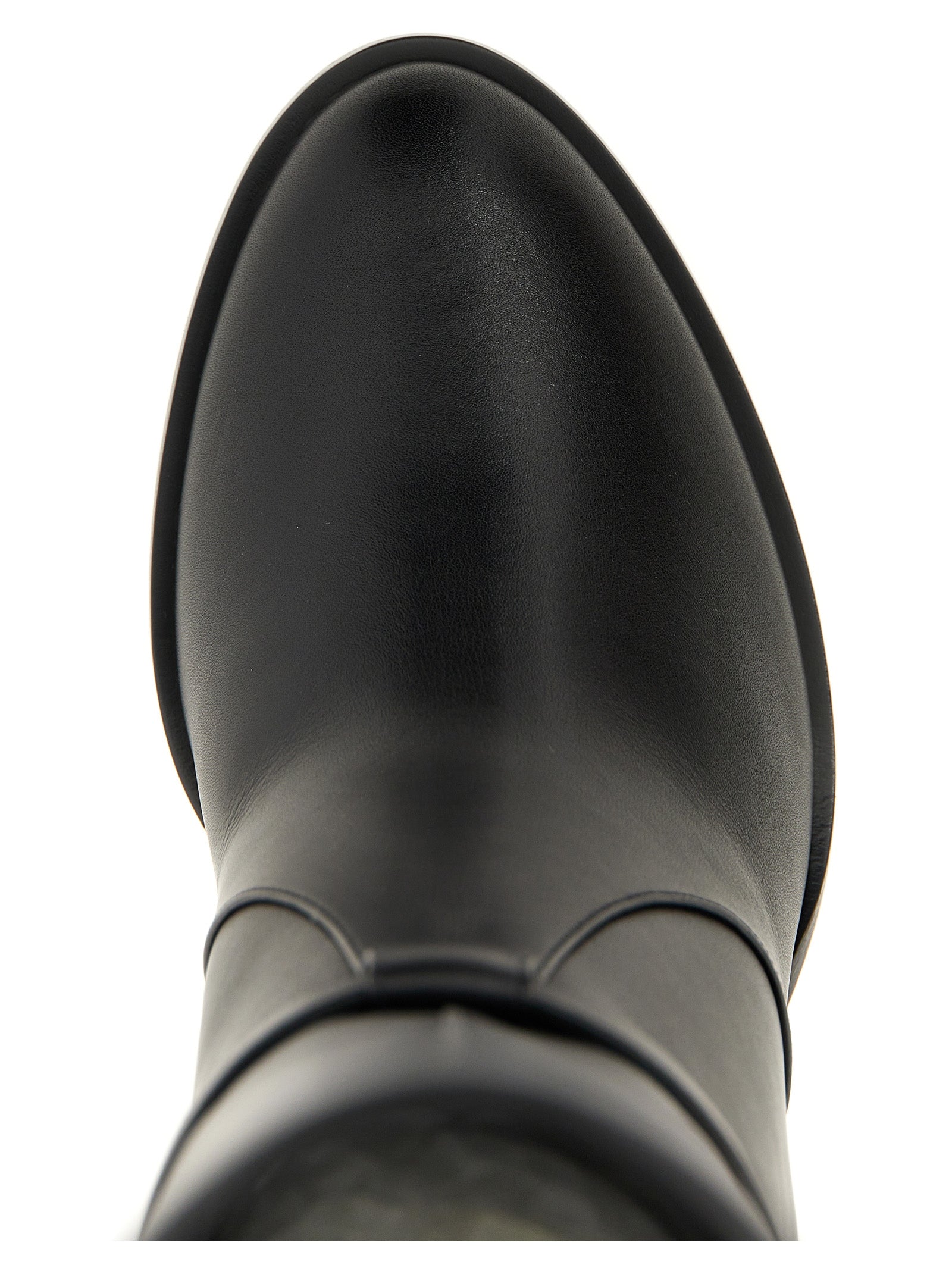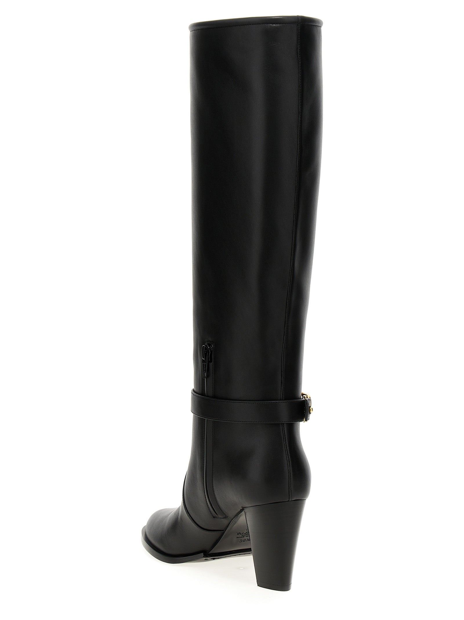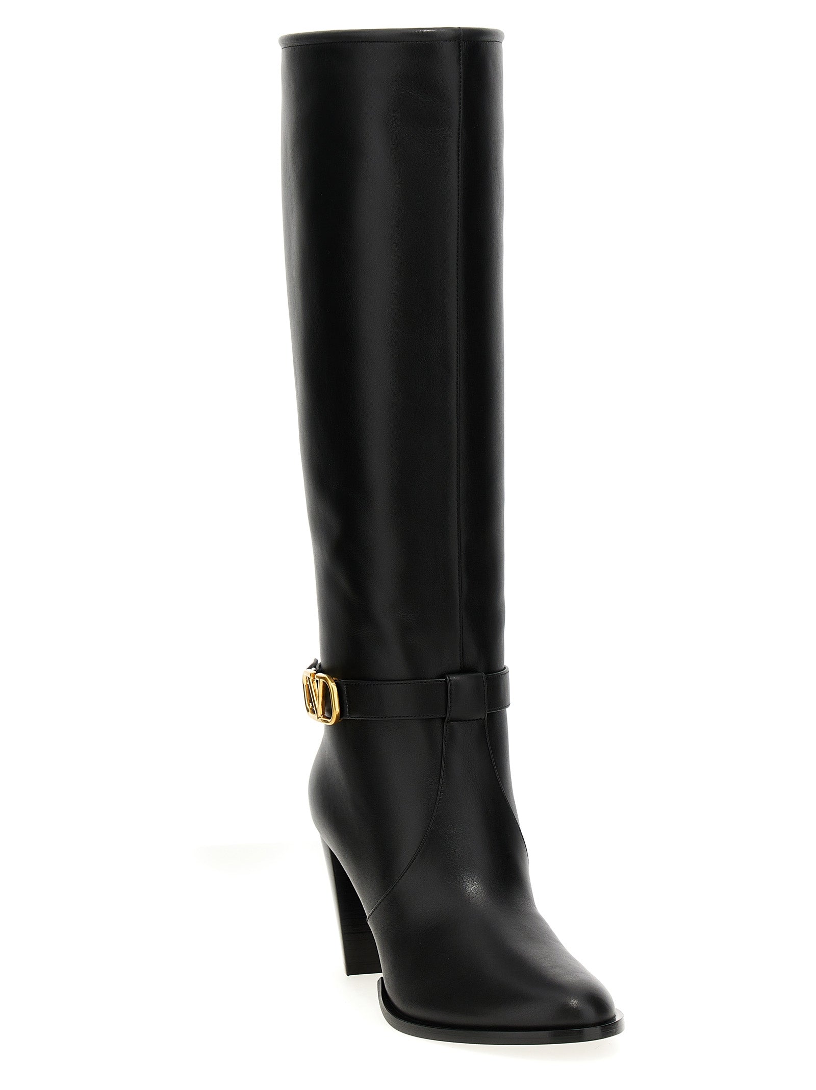 Leather boots, strap with metal 'VLogo Signature' buckle at the ankle, side zip closure, wide heel, leather sole.