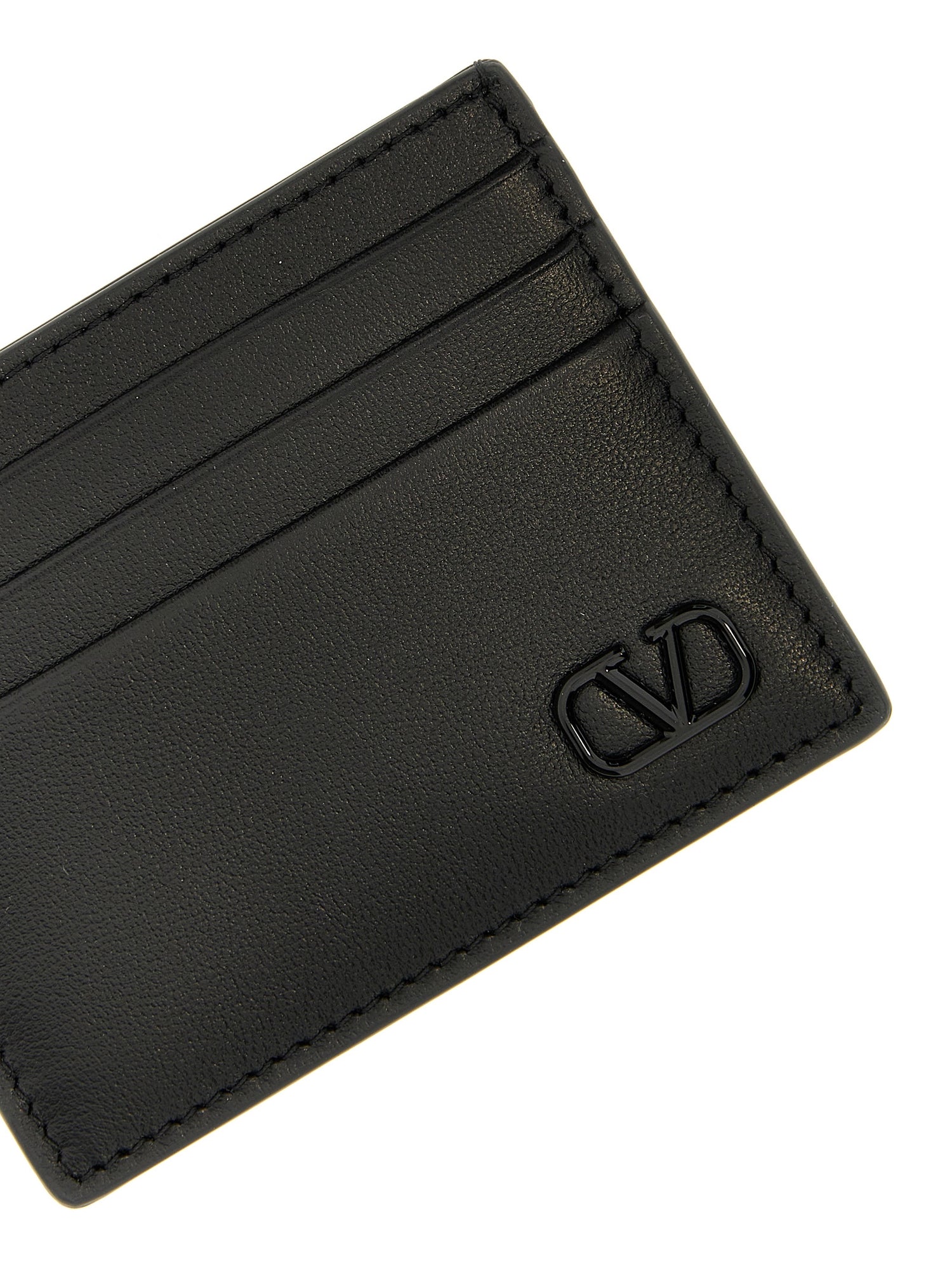 Skórzany uchwyt na karty Valentino Garavani „Vlogo” z logo mikro metalicznym tonem na ton.