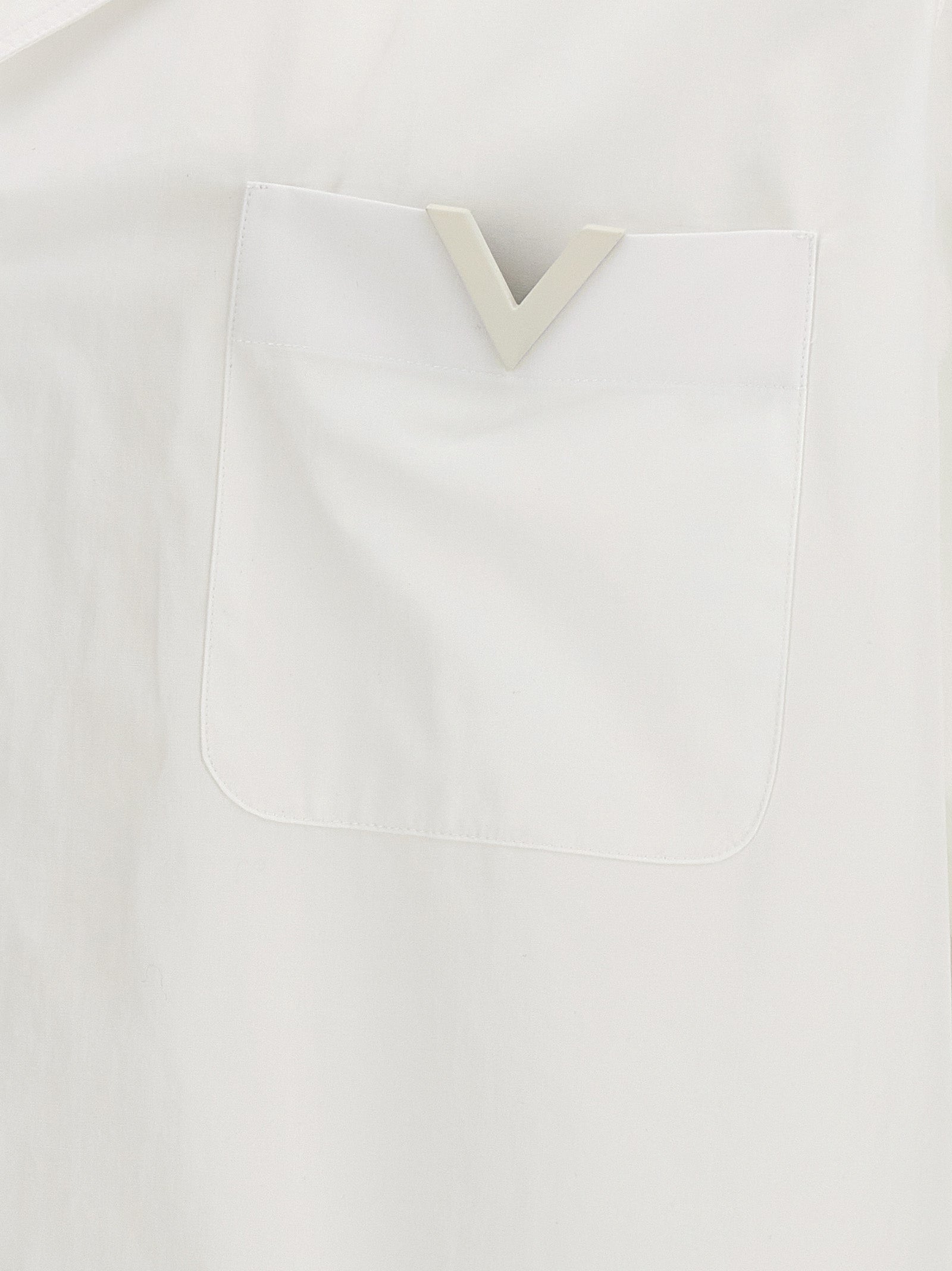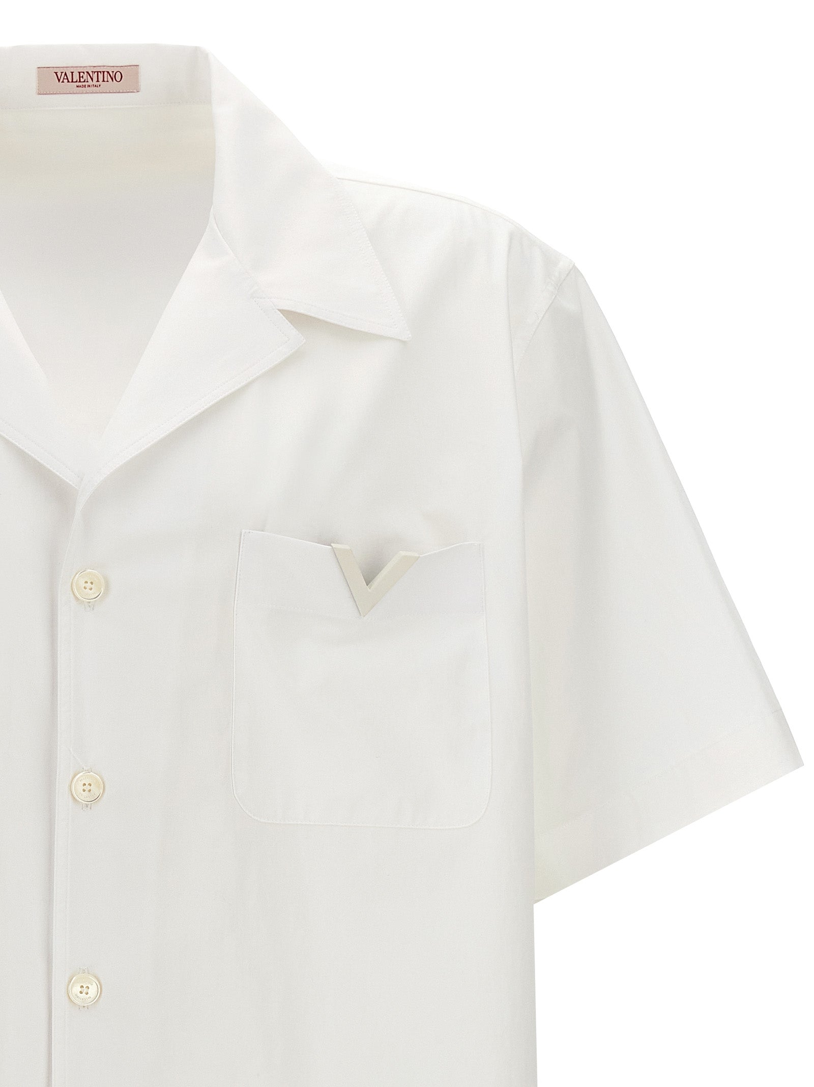 Bawełniana popelowa koszula z gumowanym „V detal”, zamknięciem guzików i krótkie rękawy.