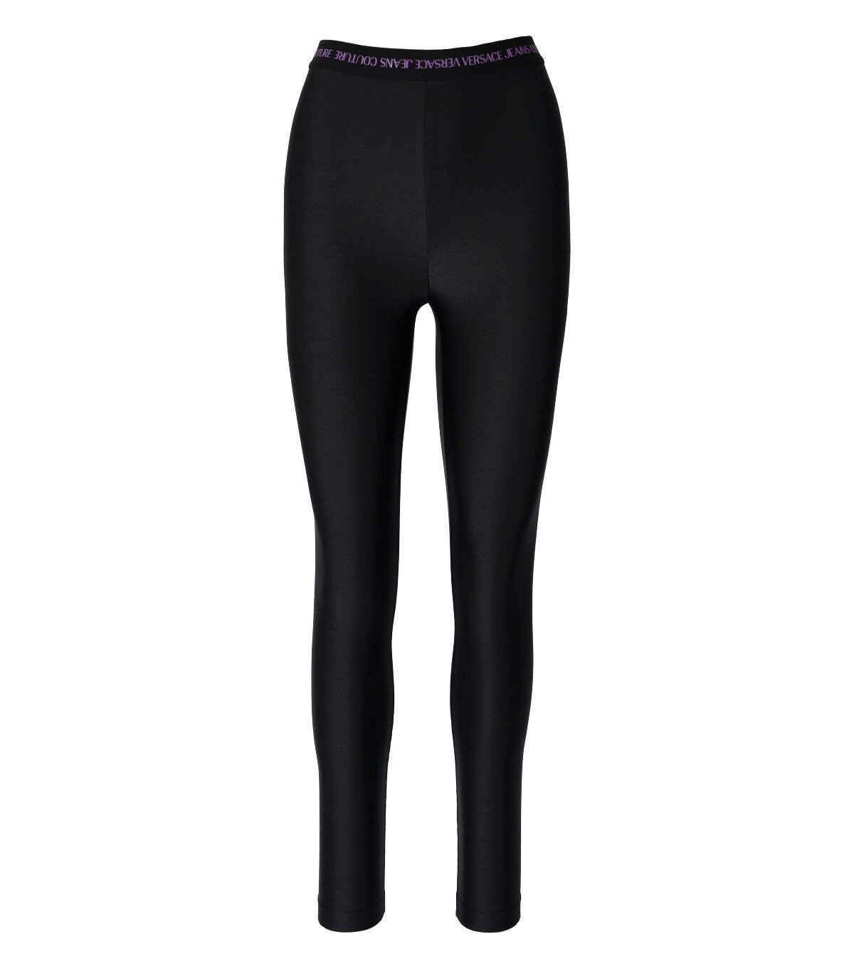 Versace Jeans Couture Legginsy wykonane z czarnej lycry z błyszczącym wykończeniem. Elastyczna talia z kontrastującym logo.