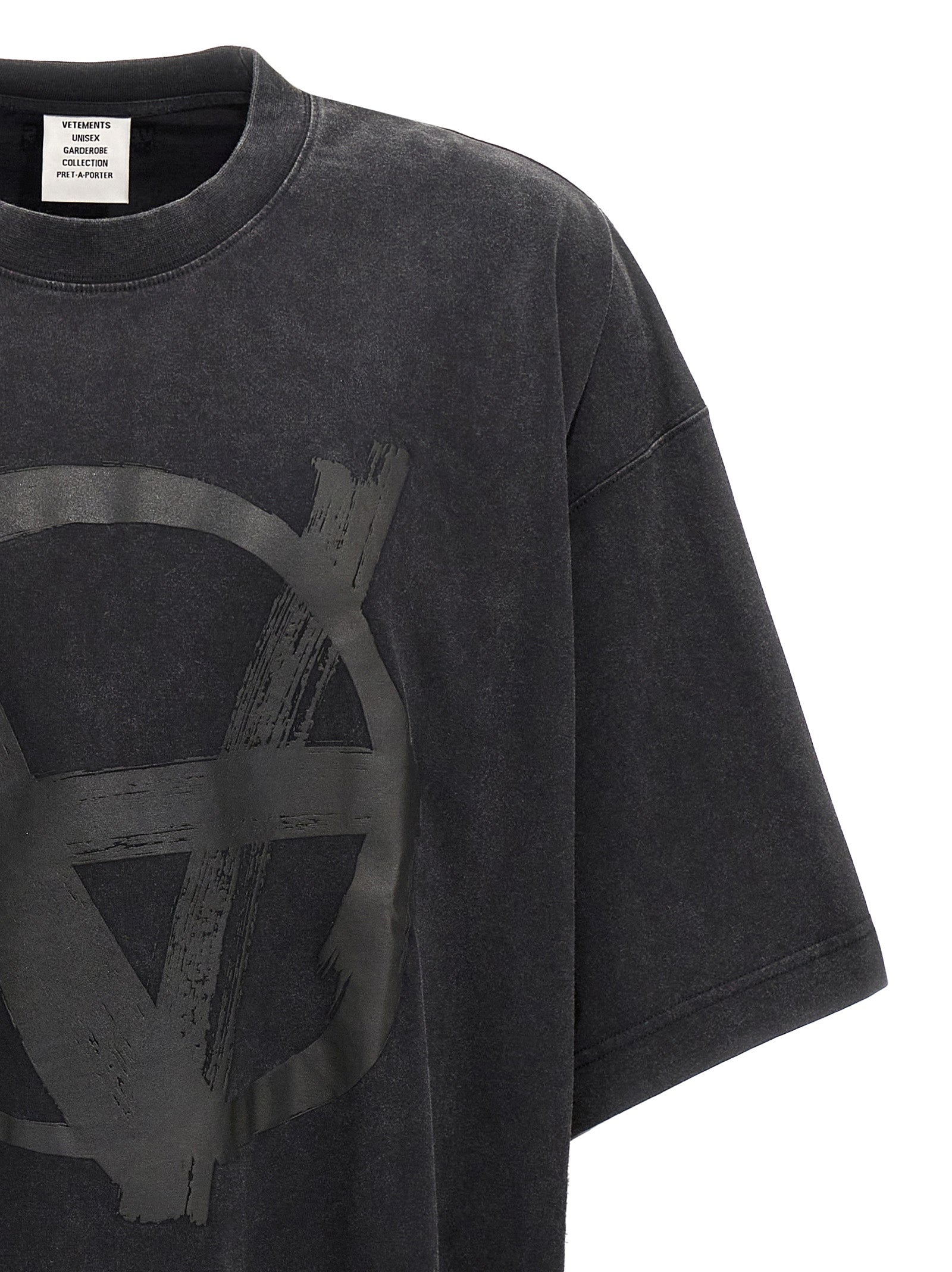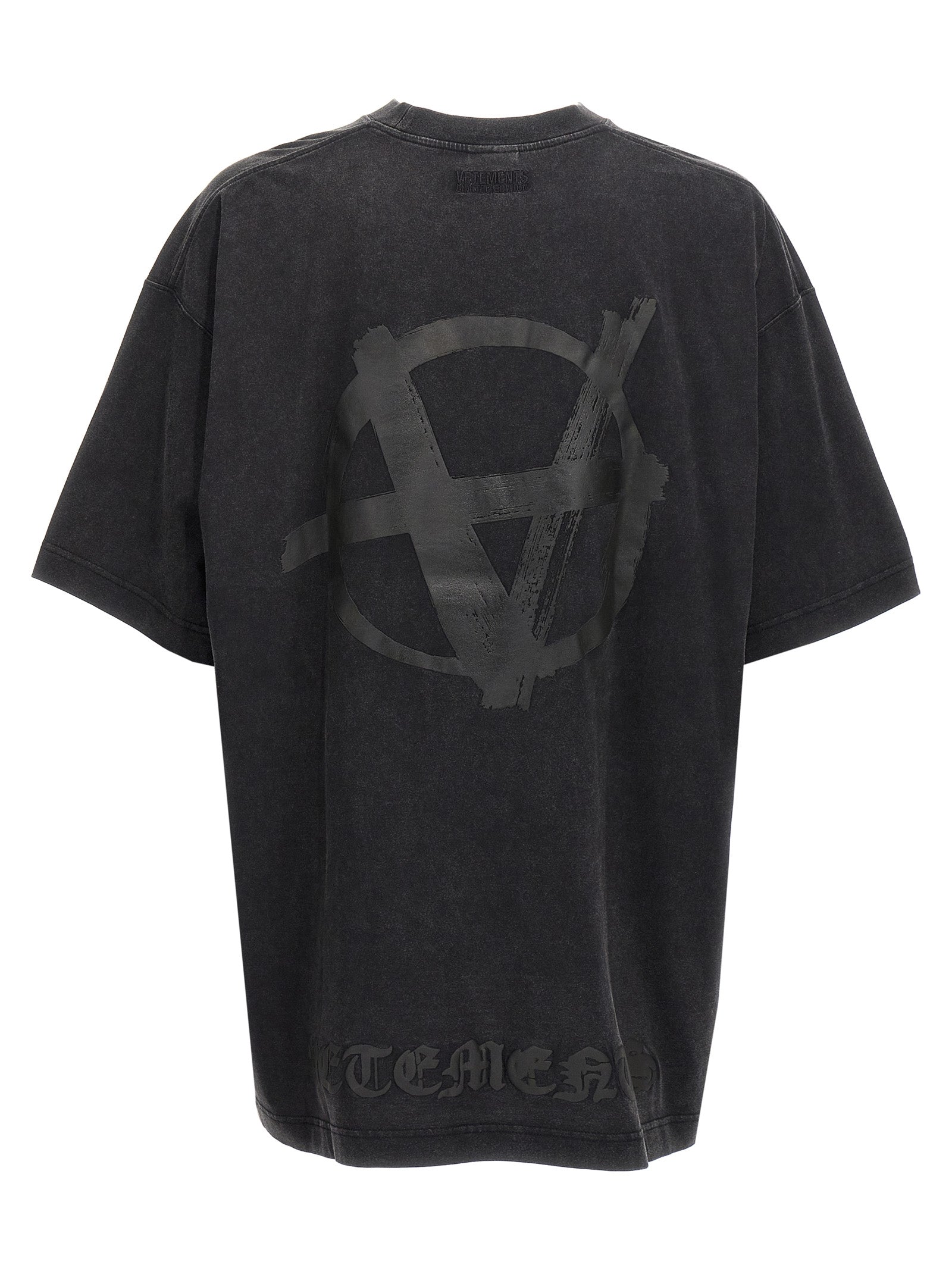 T-shirt z bawełnianą załogą „Double Anarchy” z przednim i tylnym nadrukiem, krótkie rękawy.