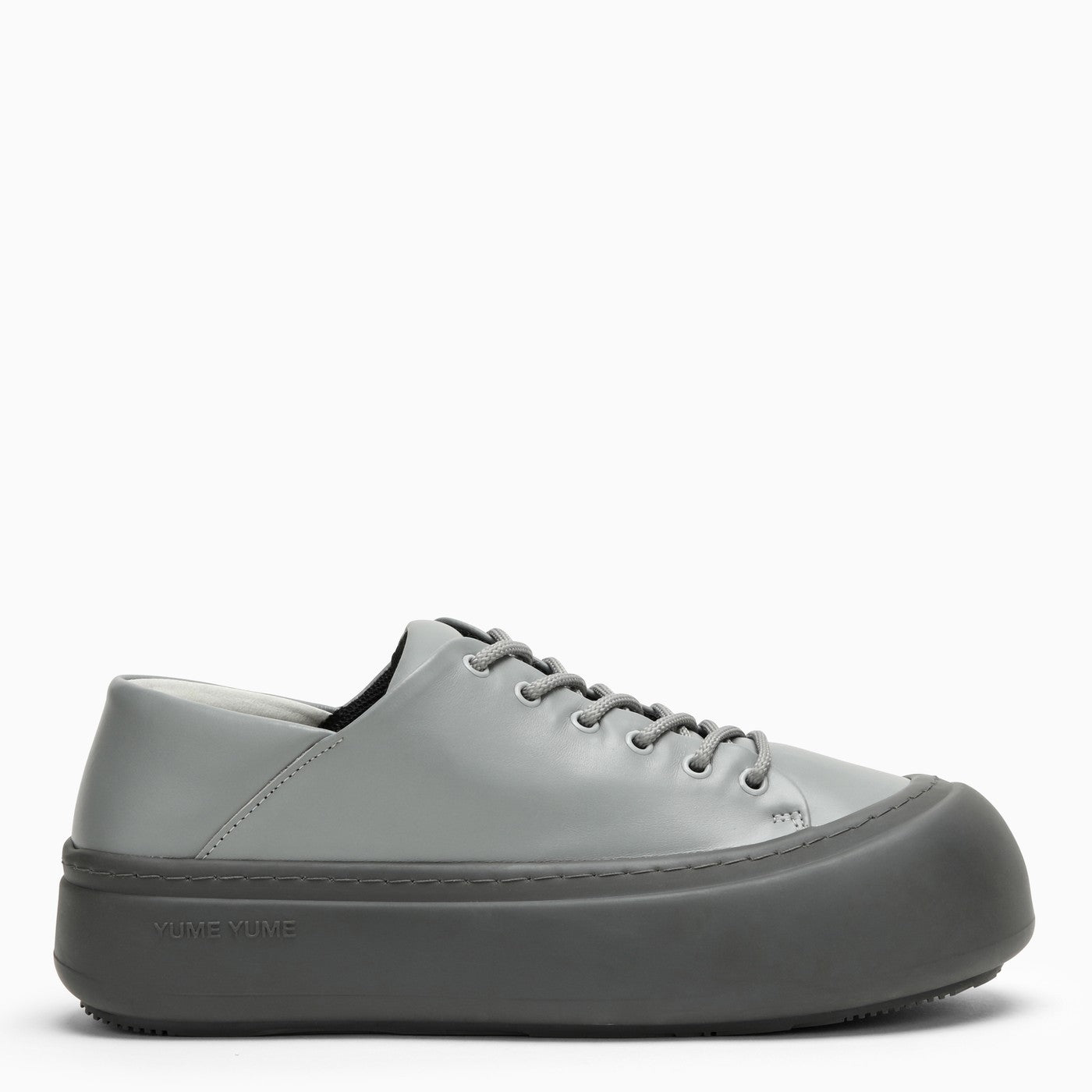 Szary skórzany trener niskiej najwyższej klasy od Yume Yume z koronkowym mocowaniem, okrągłym palcem i gumową podeszwą.