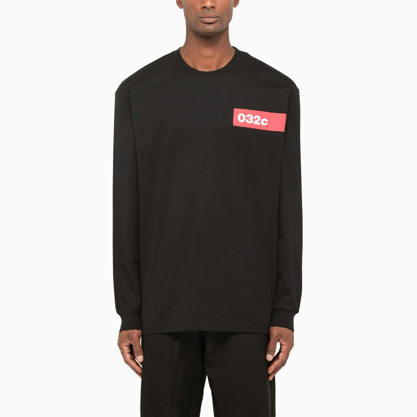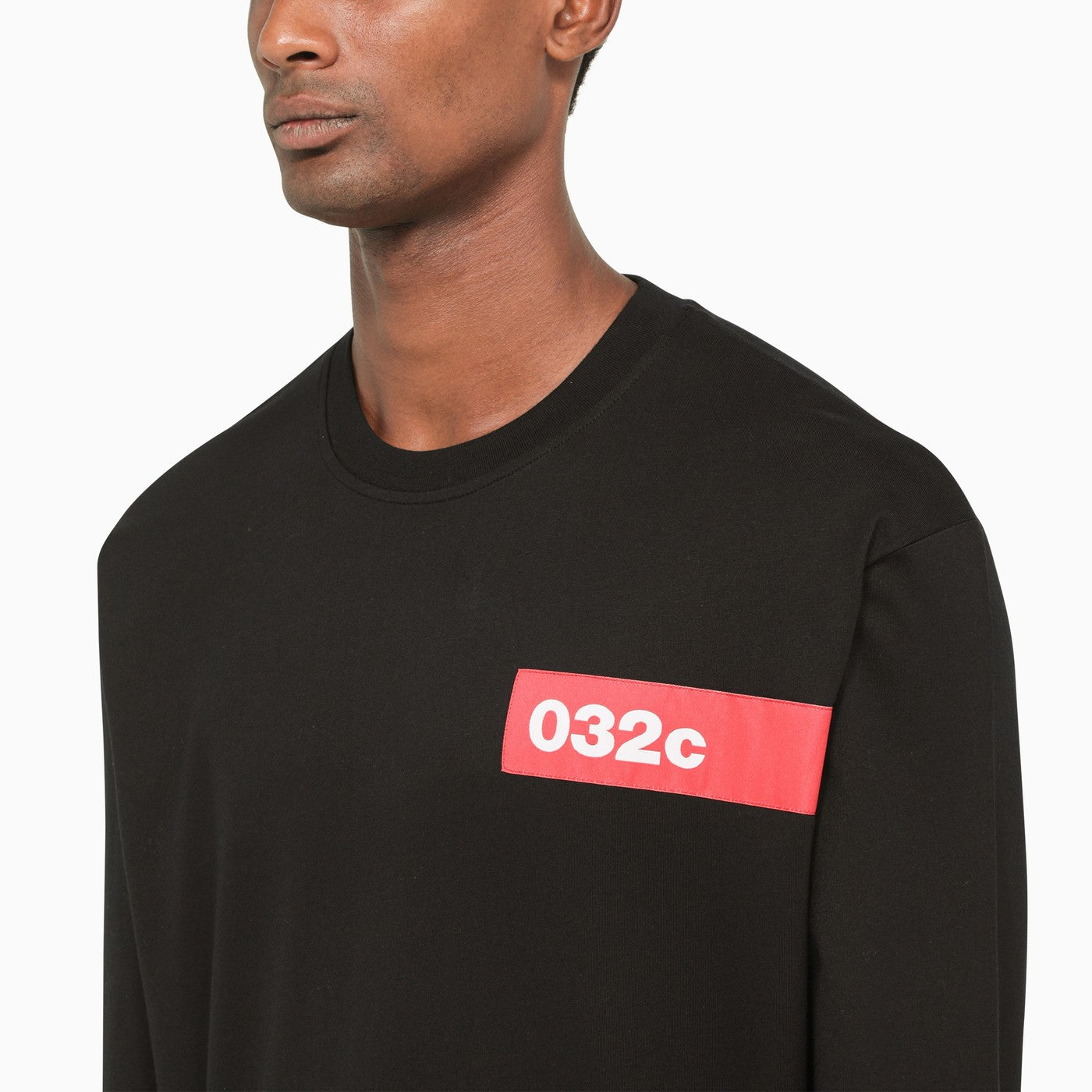 032C crew neck sweatshirt in black cotton with long sleeves and logo detail on the chest.