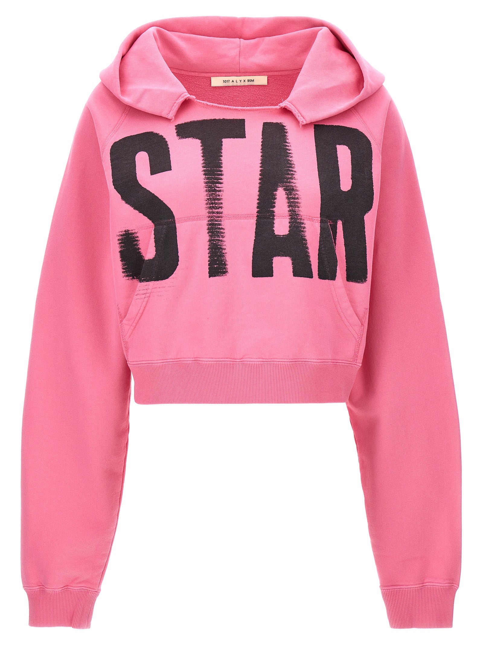 'Star' cotton crop hoodie with print on the front and back, kangaroo pocket, long cuffed sleeves.