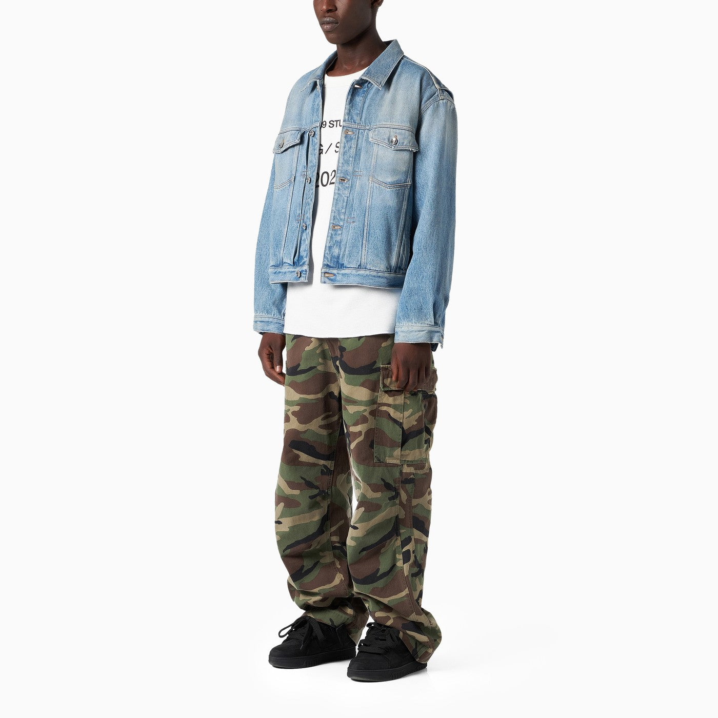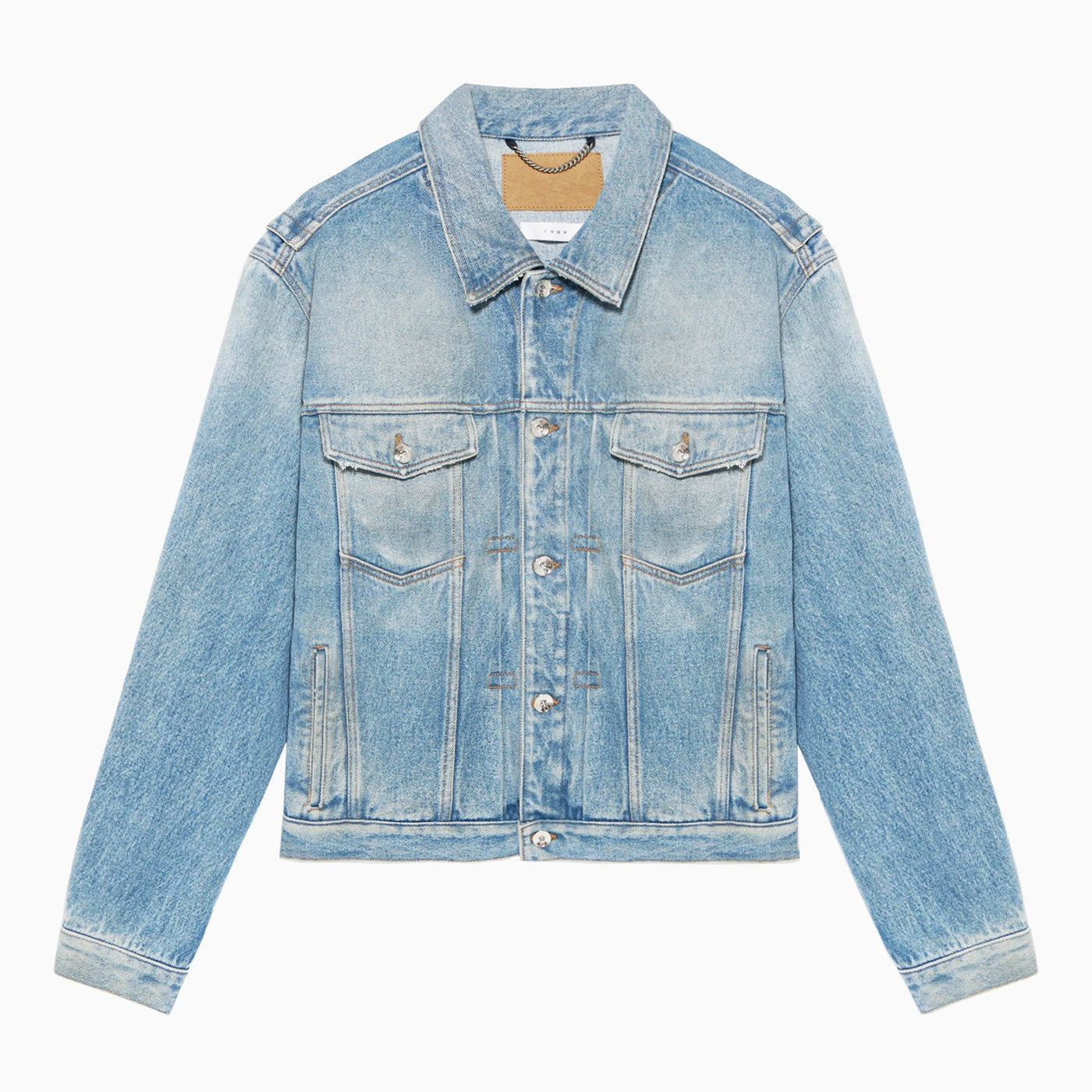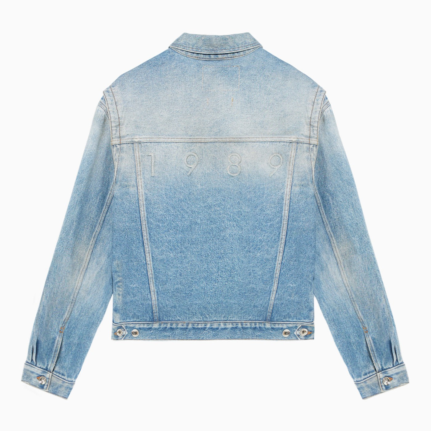 Denim jacket by 1989 Studio defined by a relaxed fit, front button fastening and logo at back.