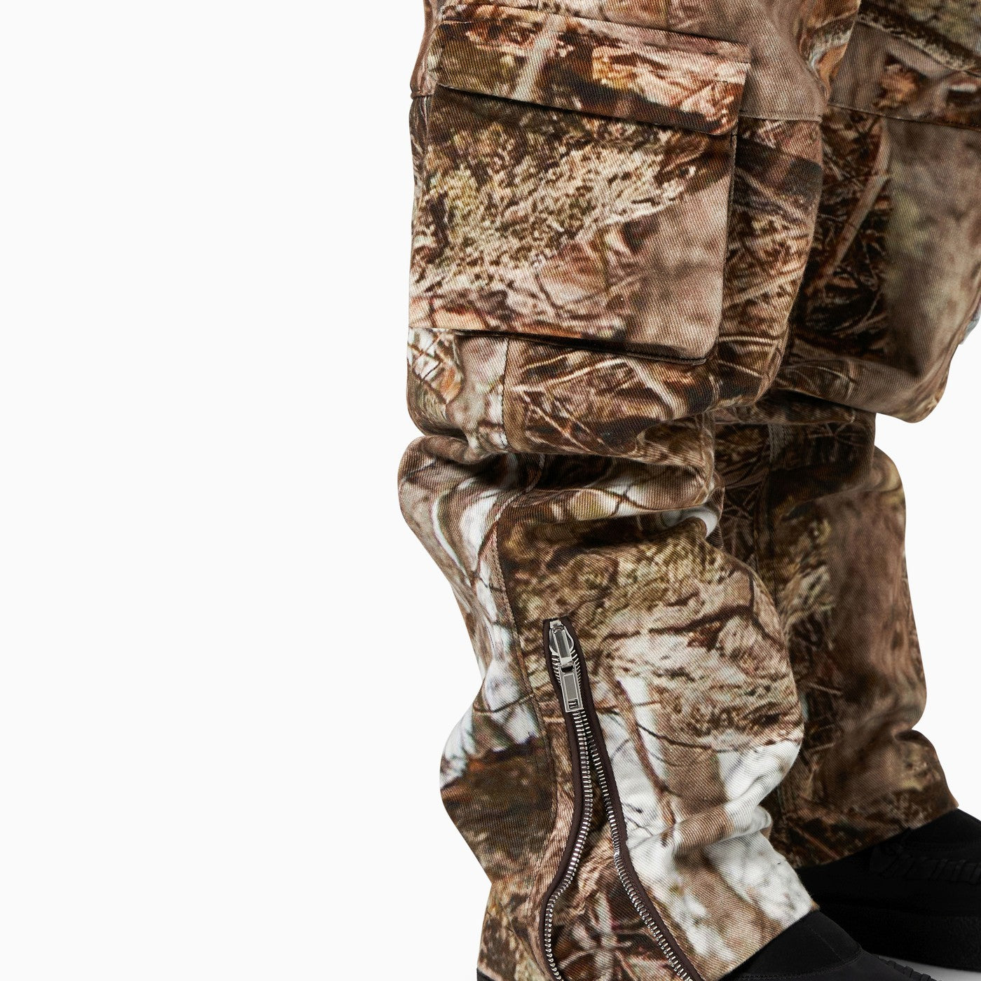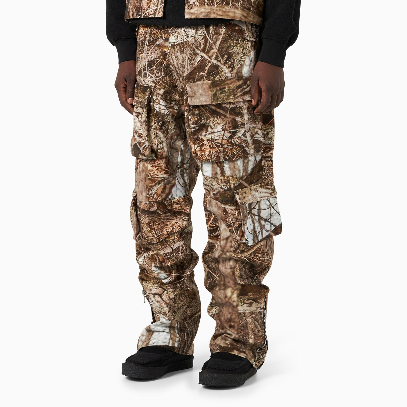 1989 Studio cargo trousers in beige cotton with a camouflage pattern, featuring a zip at the leg bottom and various pockets.