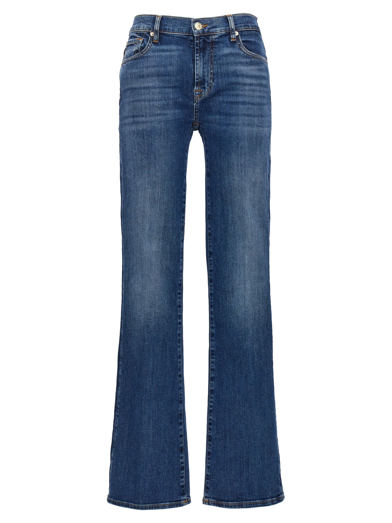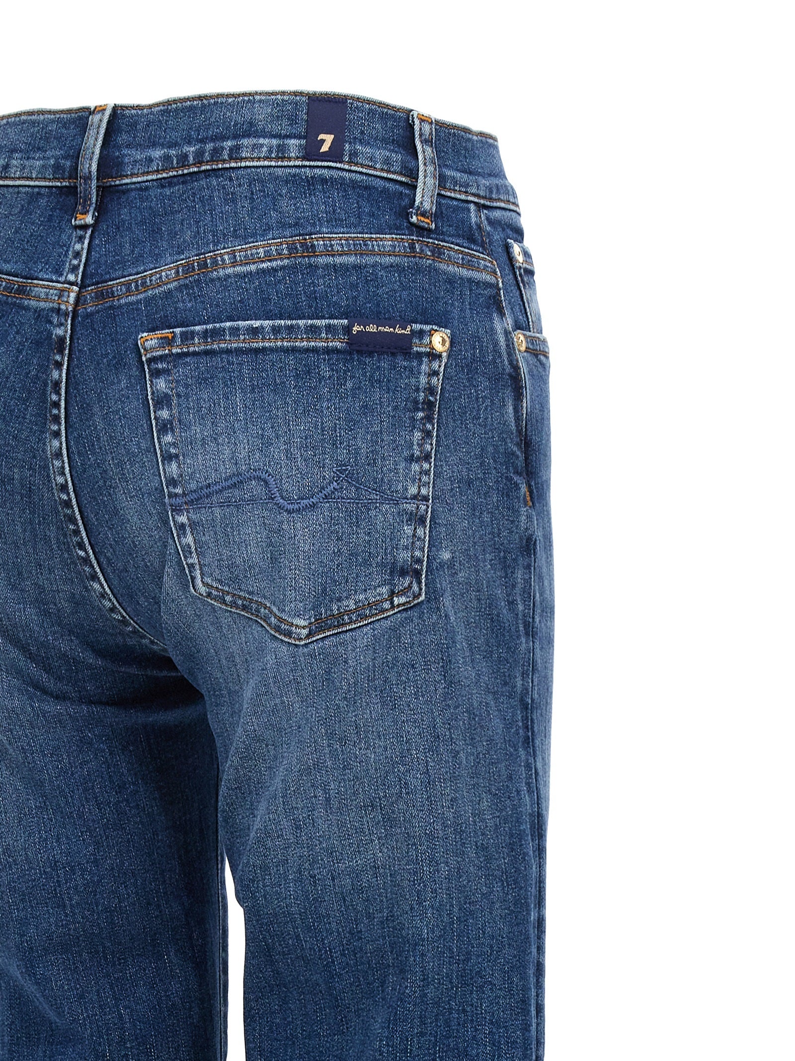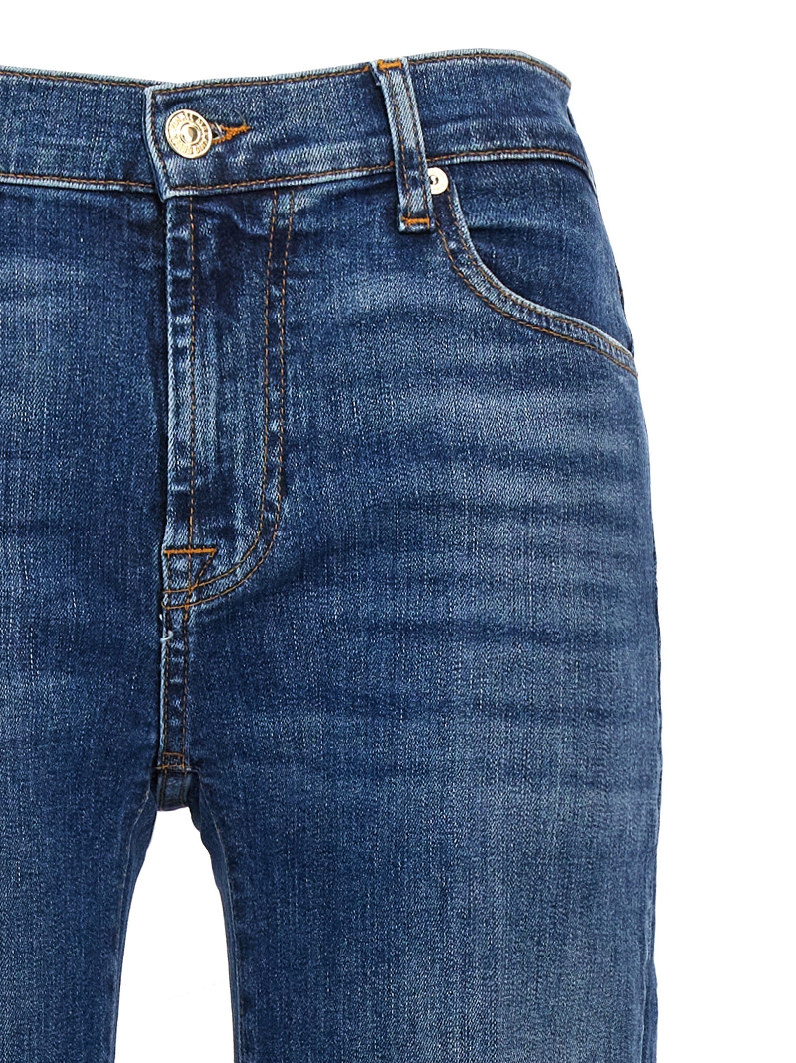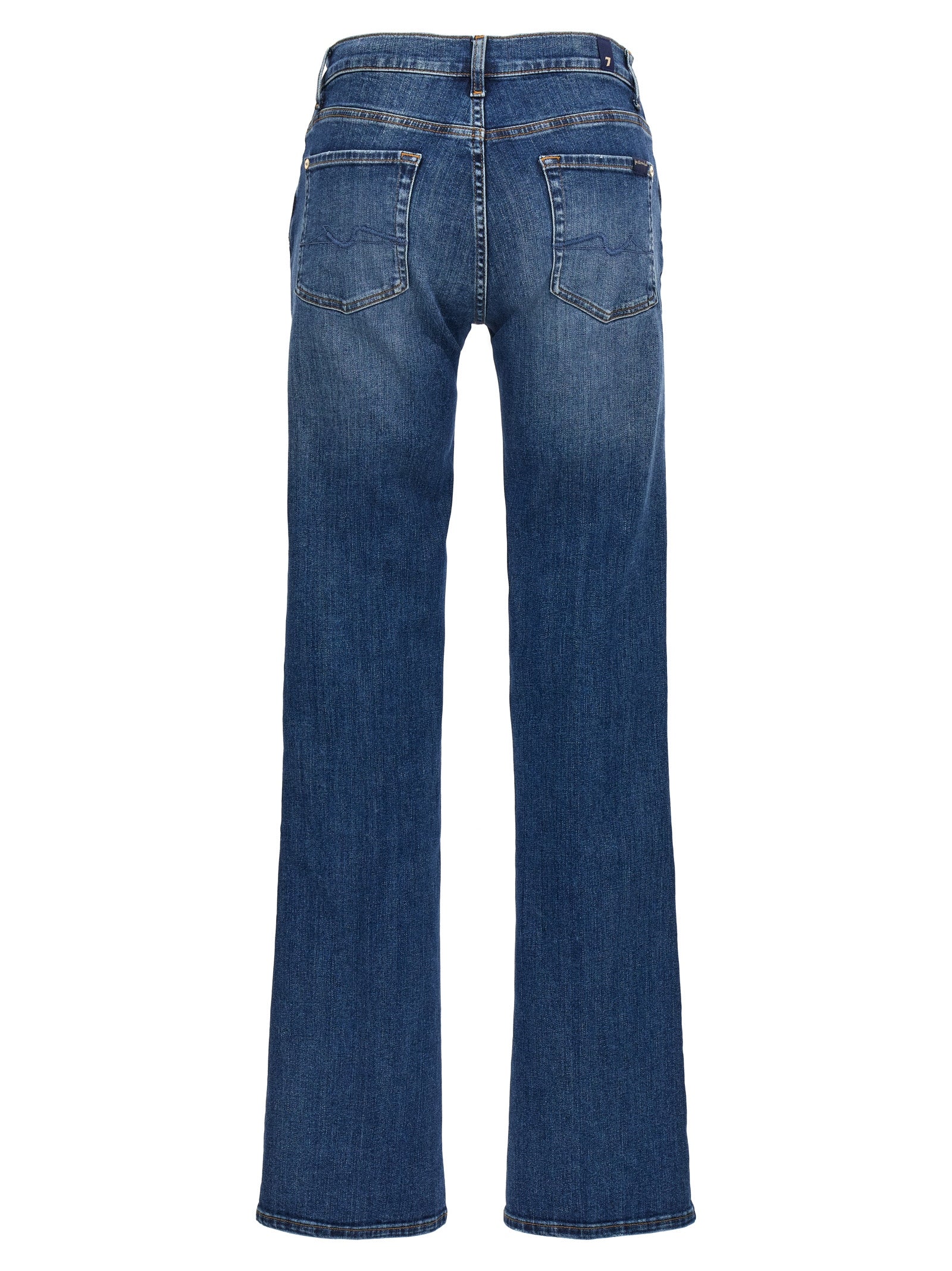 'Bootcut' stretch cotton denim jeans with zip and button closure, five pockets, flared leg with stretched pleat.