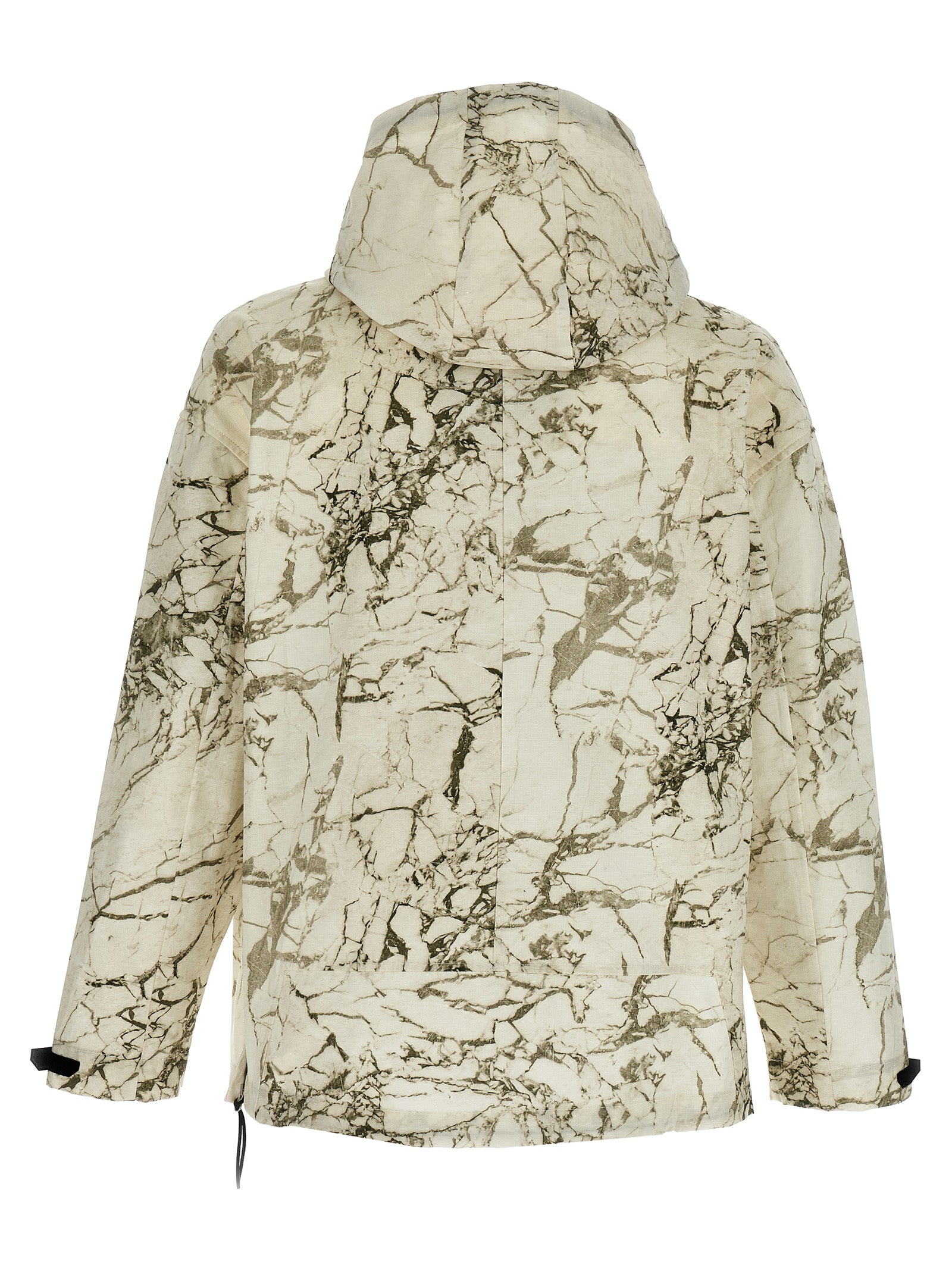 Overset Tech' cotton anorak with all-over marbled effect print, a front logo print, a half zip closure, pockets, long cuffed sleeves, drawstring on the garment bottom hem and a removable hood.