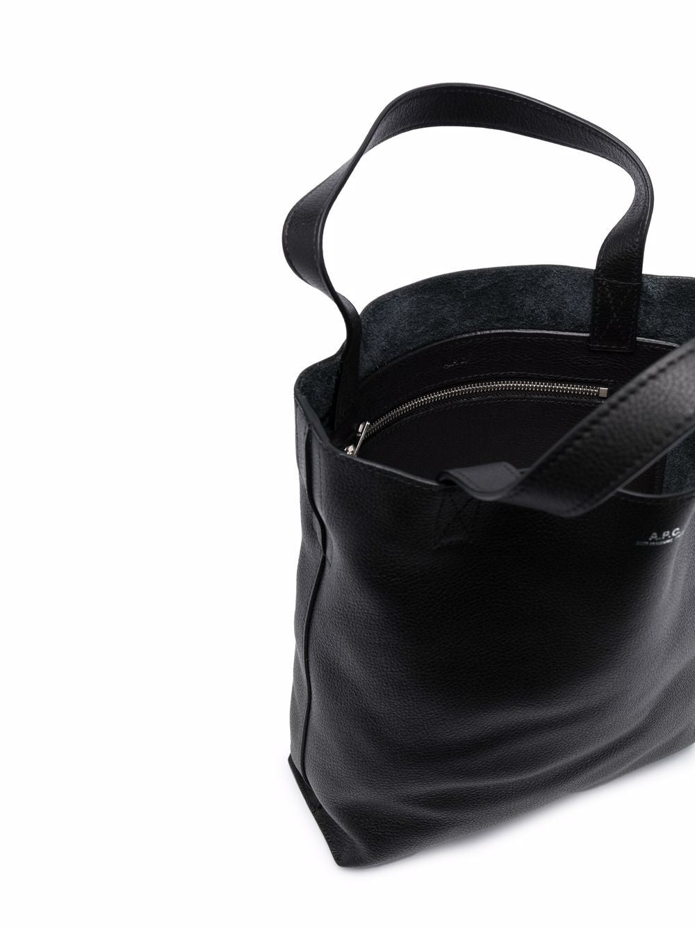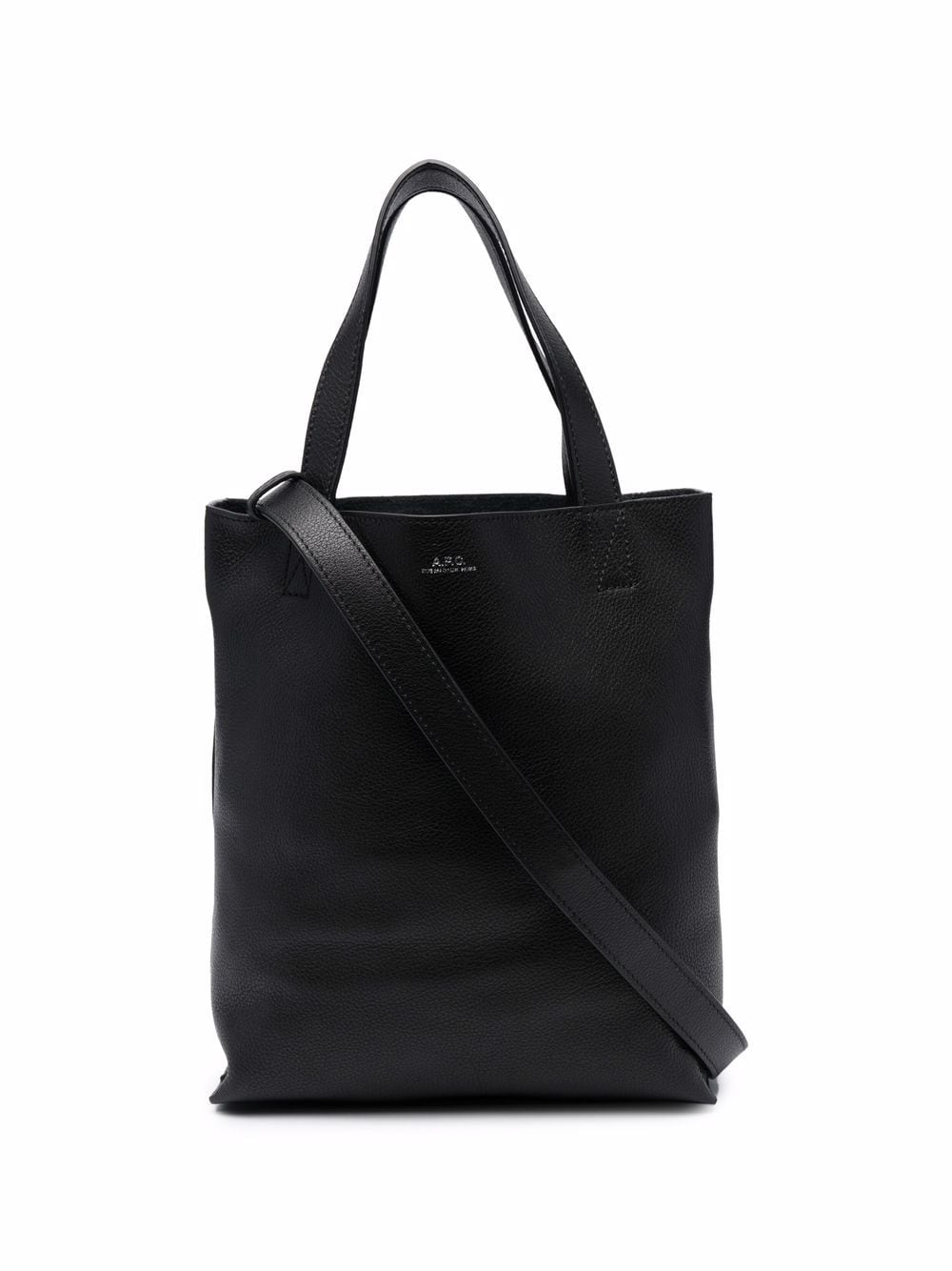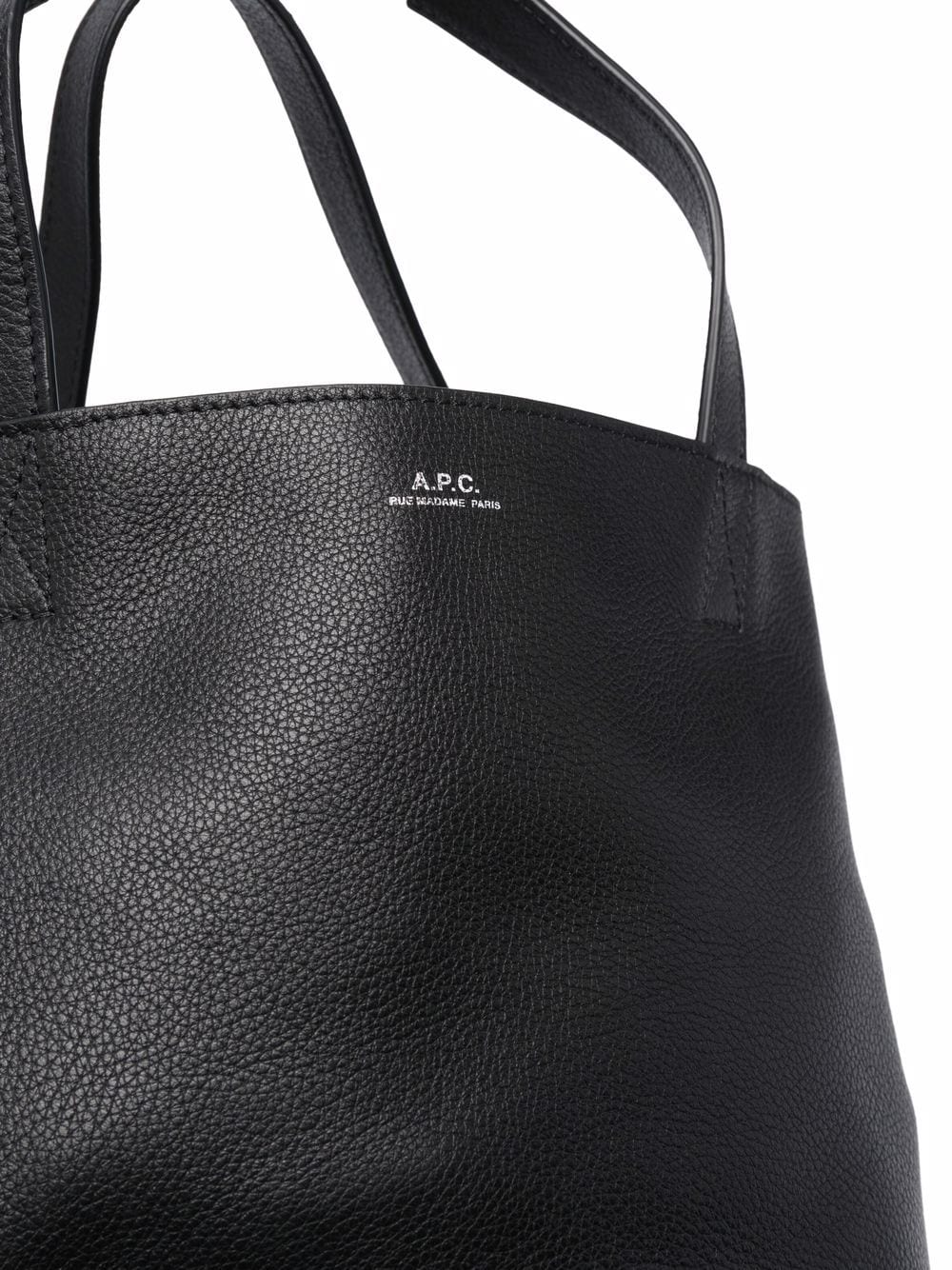 Calf leather Maiko leather tote bag from A.P.C. featuring grained texture, debossed logo, flat top handles, adjustable detachable shoulder strap, main compartment and internal zip-fastening pocket.