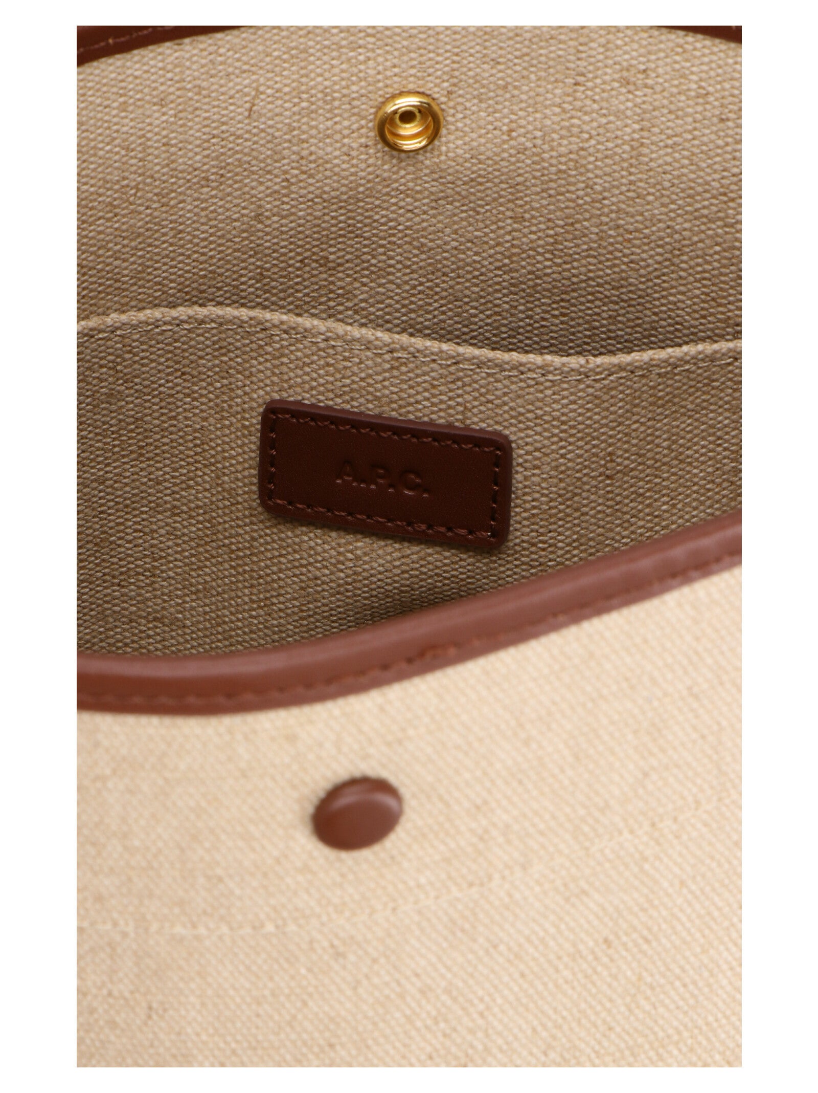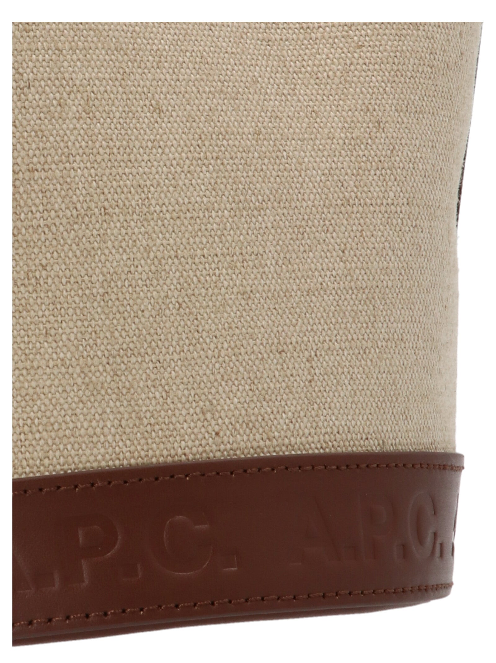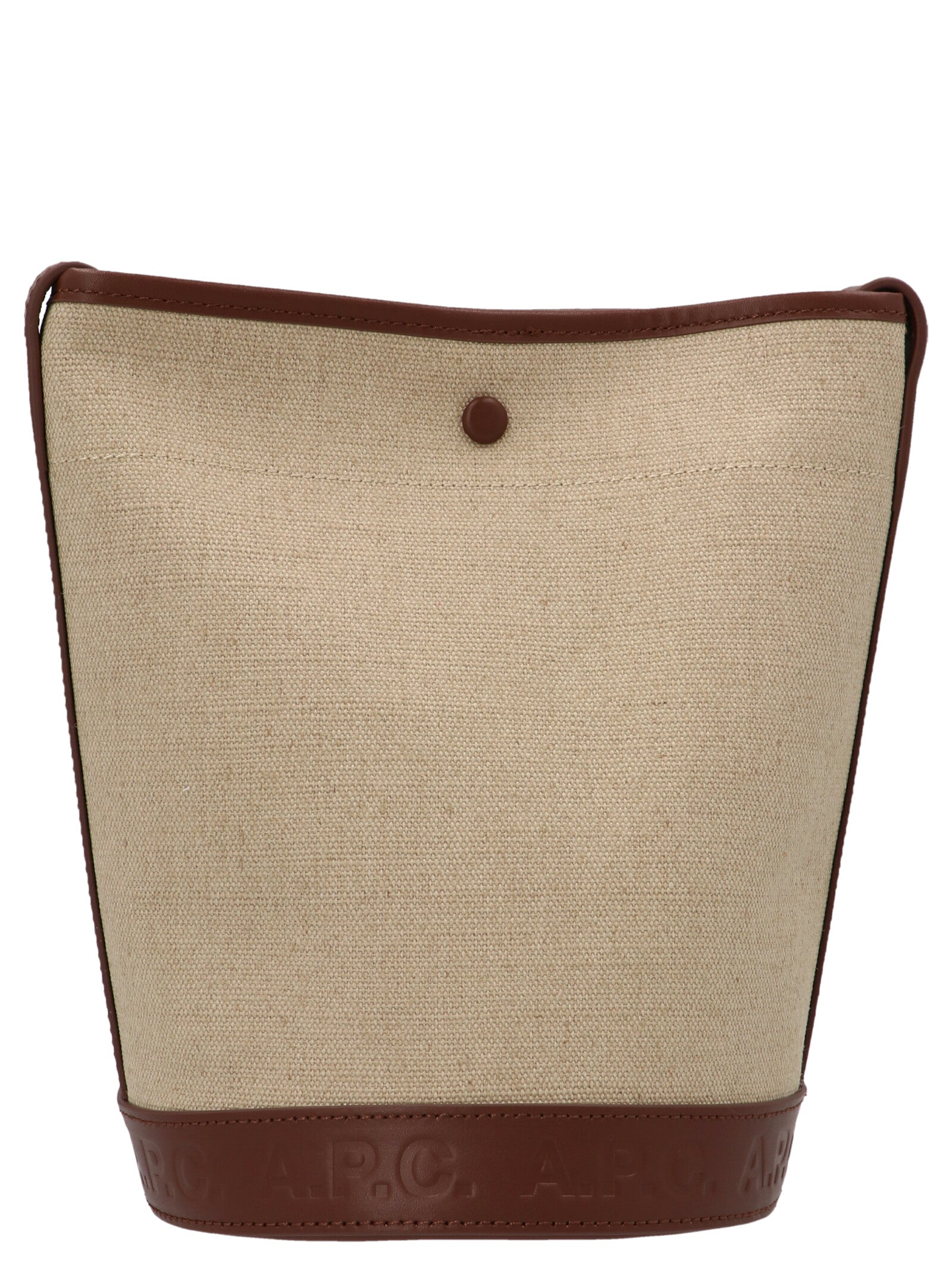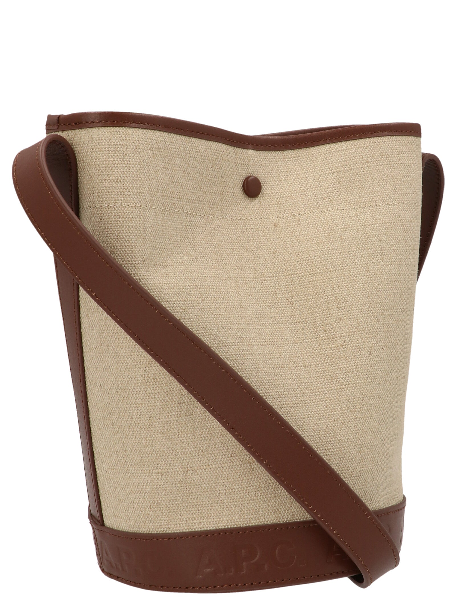 'Helene' canvas bucket bag with leather trims and adjustable shoulder strap.